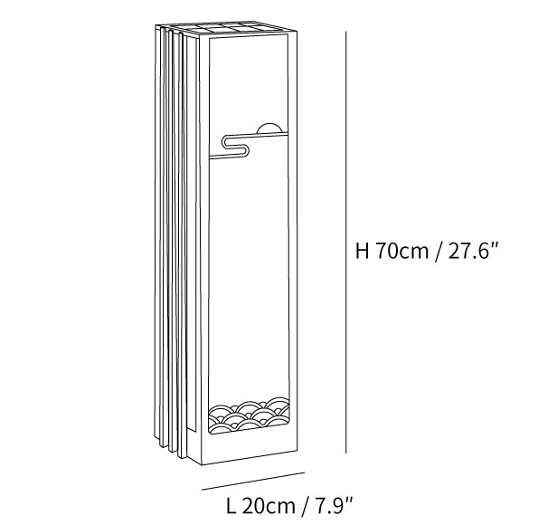 Aurinkovoimalla toimiva versio Koko: P 20 cm x L 18 cm x K 70 cm / P 7,9″ x L 7,1 x K 27,6″