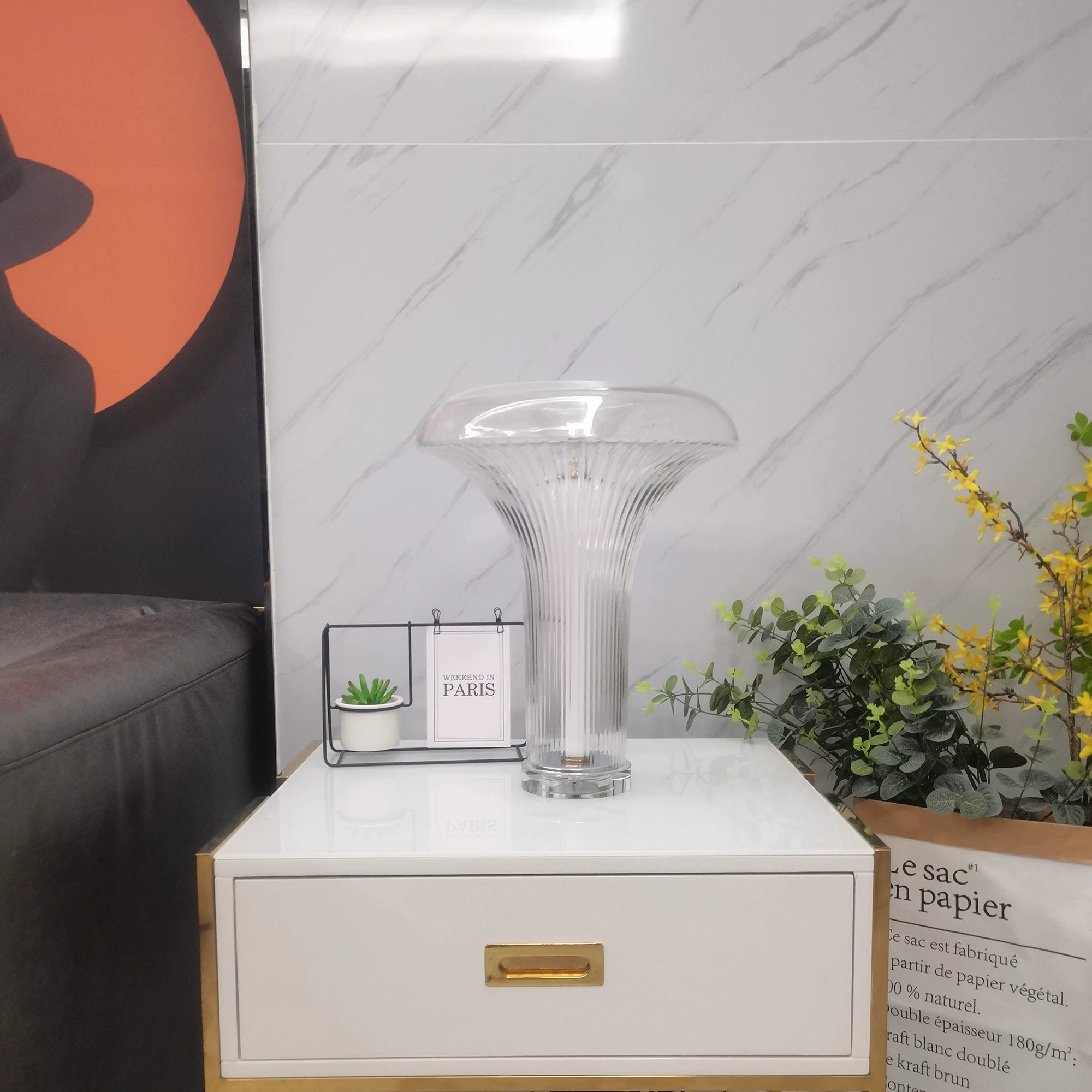 Takku-pöytävalaisin on tyylikäs ja moderni muotoilu, joka sopii täydellisesti nykyaikaiseen sisustukseen. Sen läpinäkyvä lasi tarjoaa tyylikkään mutta hienovaraisen valaistuksen, joten se on loistava valinta mihin tahansa huoneeseen. Hienostunut ja ajaton ulkoasu, Takku-pöytävalaisin lisää luokkaa kotiisi.