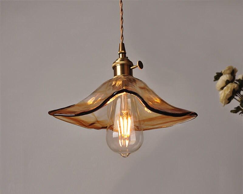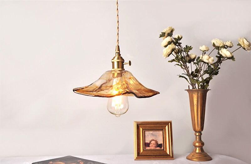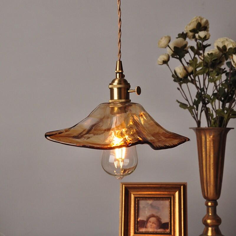 Teenvärinen lasiriippuva LED-valo nenäliinalampunvarjostimella vintage-tyyliin - Faredecor