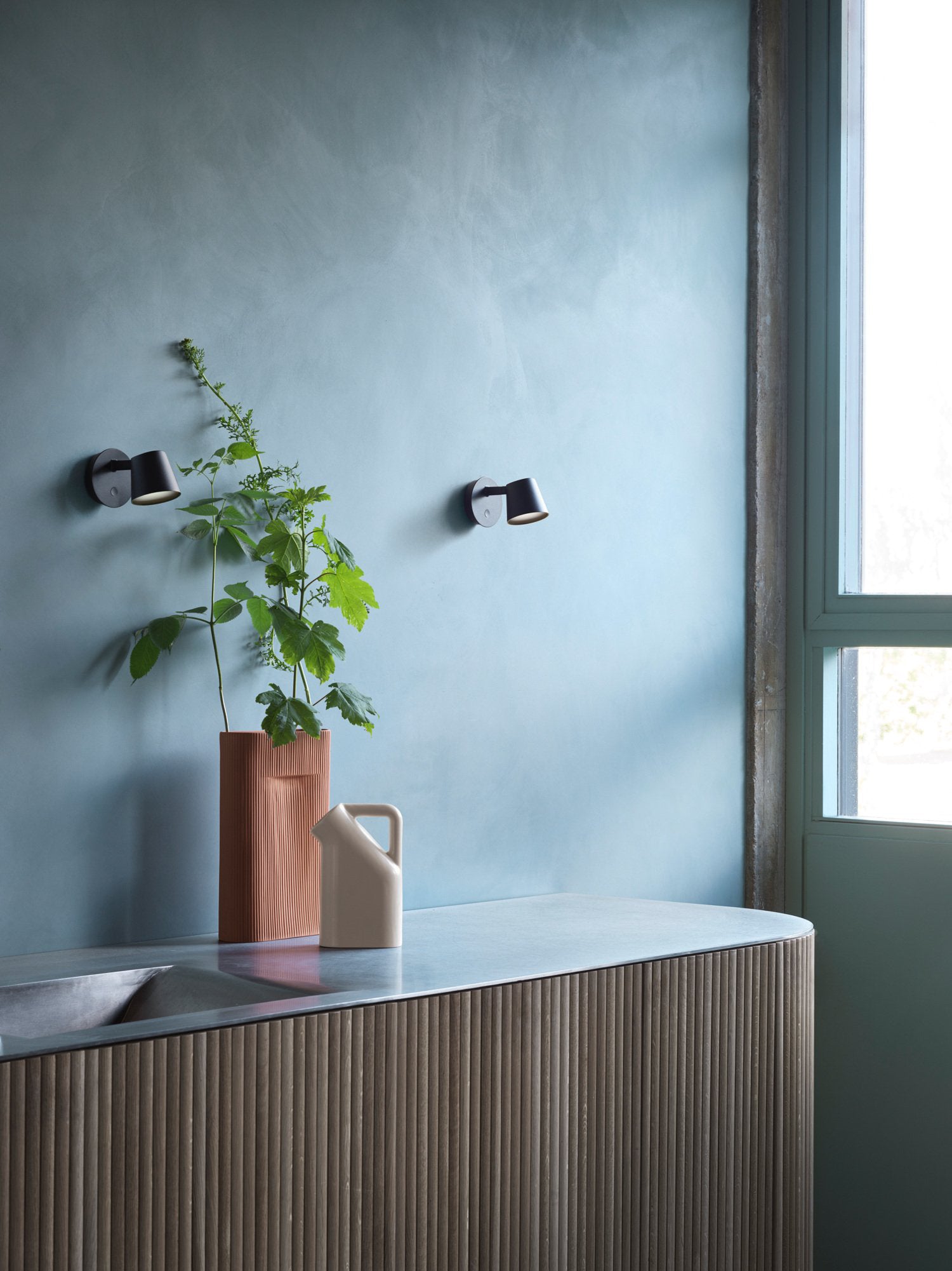 Käsivalaisin on suunniteltu pelkistetyksi suunnittelun olemukseen. Se on loistava esimerkki yksinkertaisesta ja toimivasta suunnittelusta, jossa on kiinnitetty huomiota yksityiskohtiin. Valon säädettävä pää ja varsi tarjoavat suoraa ja ympäröivää valoa lämpimään ja kutsuvaan tunnelmaan.
