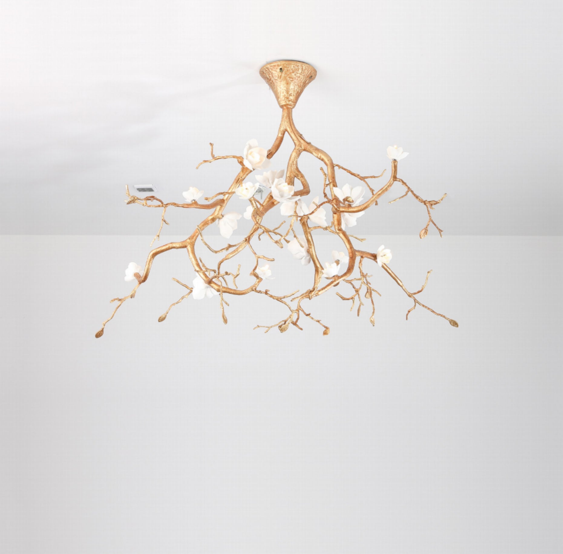 Tämä ylellinen Tree Branches Flower -kattolamppu on valmistettu puhtaasta kuparista, ja siinä on vintage-design, jossa on valkoiset keraamiset kukat täydessä kukassa. Sen upea klassinen tyyli lisää ripauksen eleganssia mihin tahansa tilaan.
