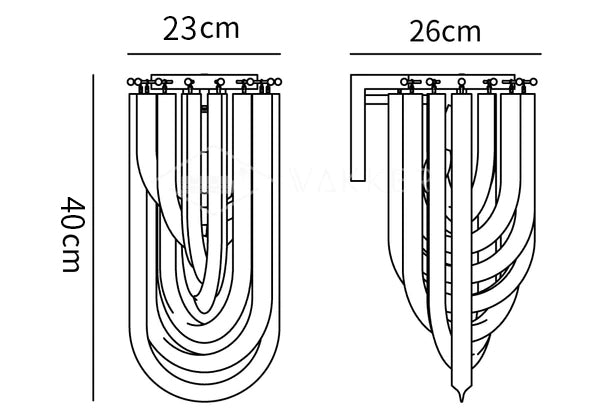 Tyylikäs vuosisadan puolivälin tyylinen kattokruunu, joka on valmistettu Muranon lasista. Sen alkuperäinen muotoilu leikkii kimaltelevien lasielementtien toistoa, jotka pystyvät luomaan tyylikkäästi hienostuneen valaistuksen.