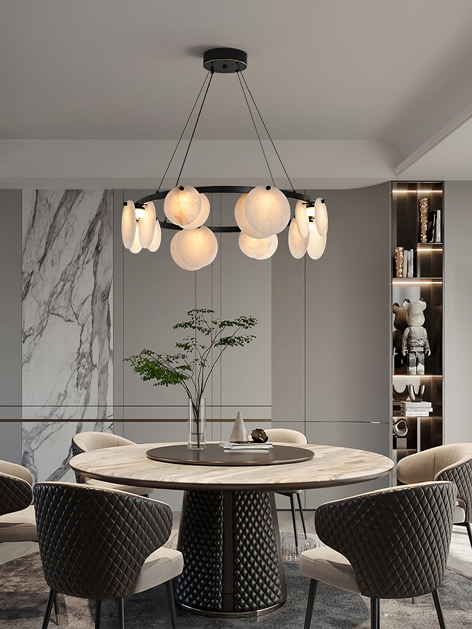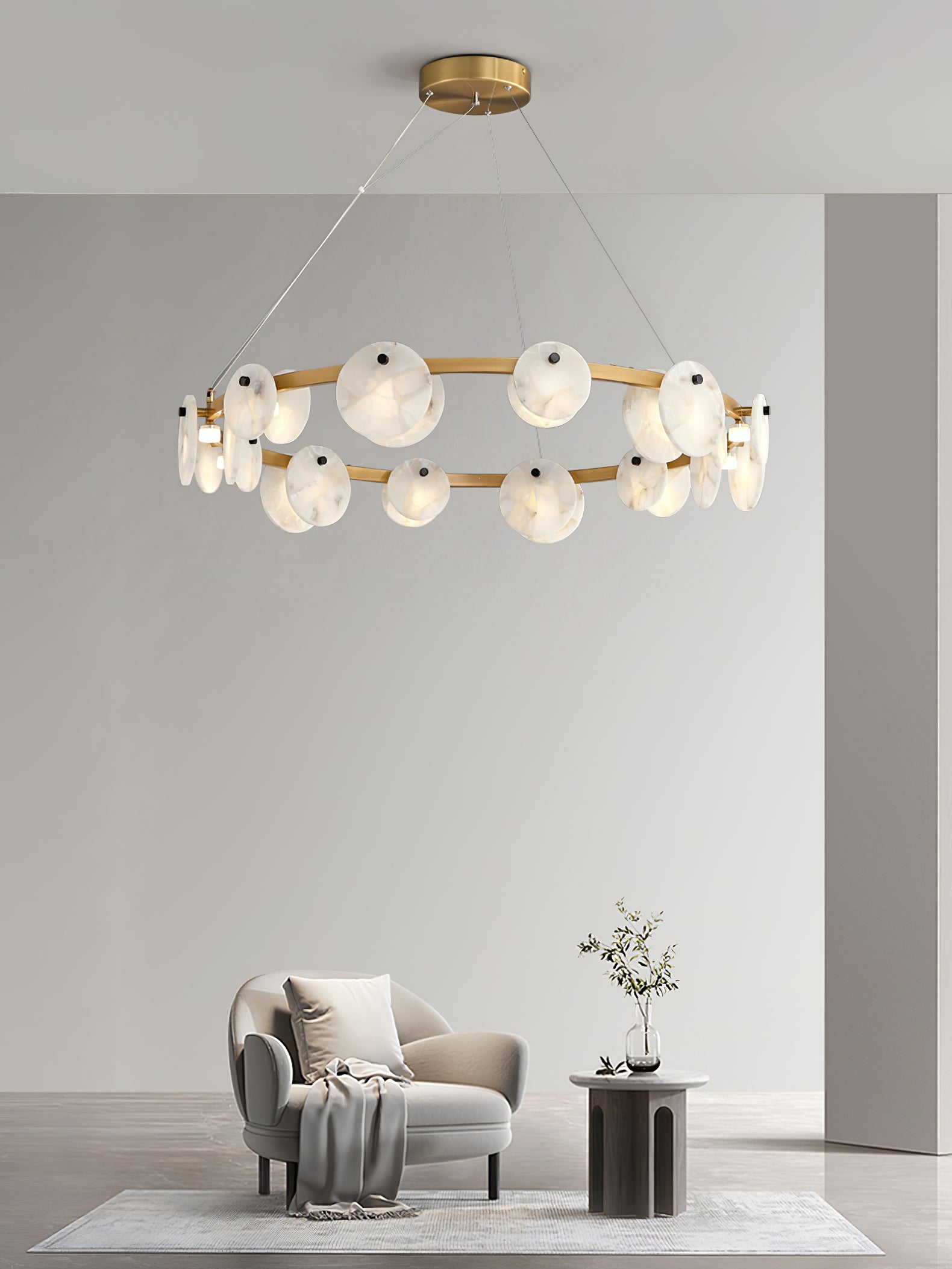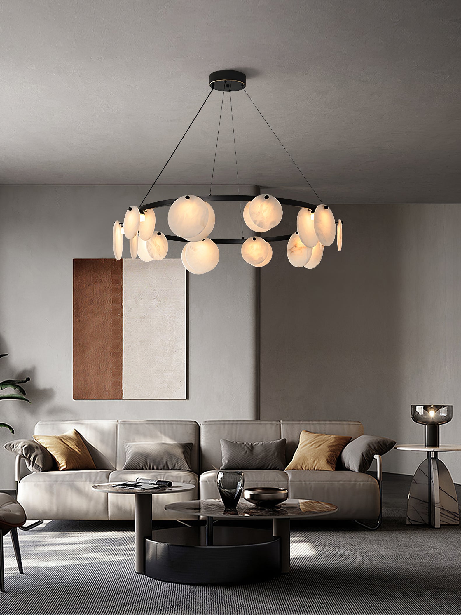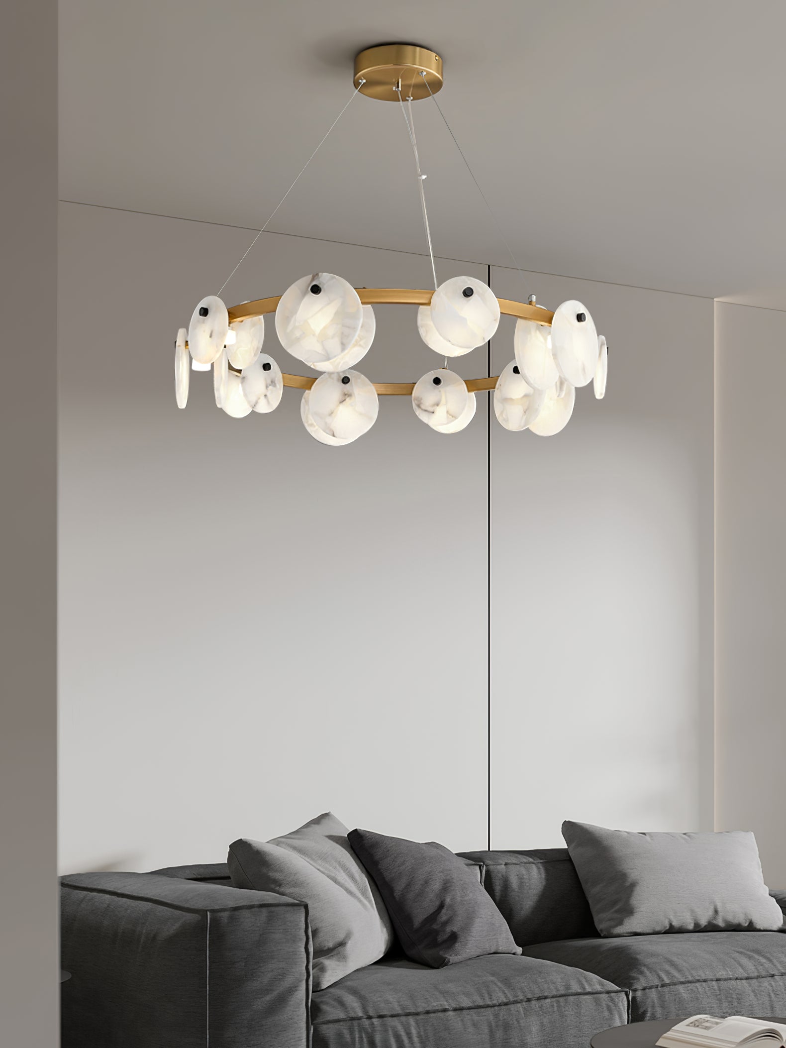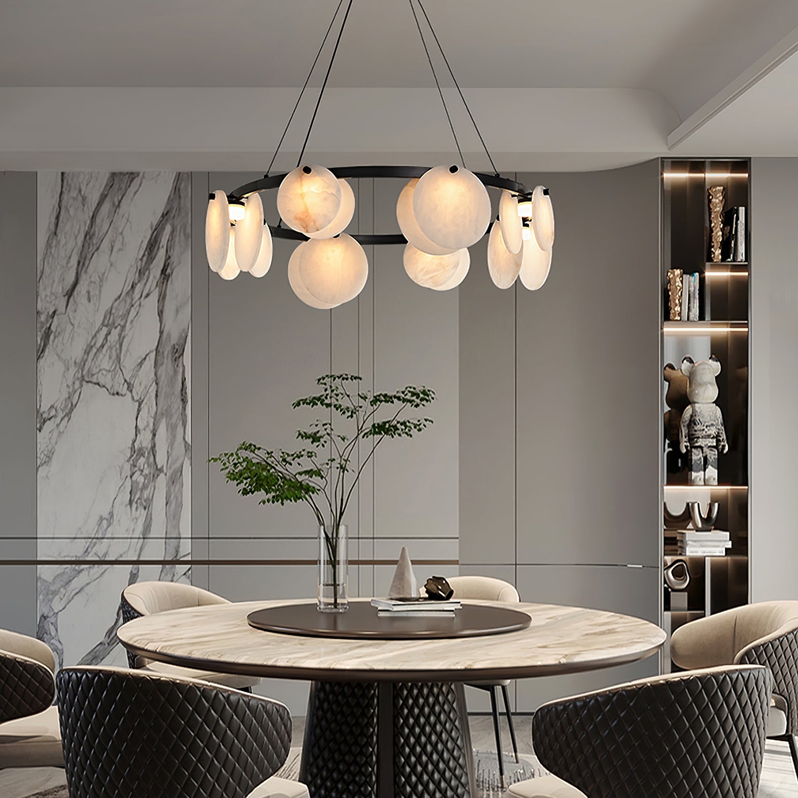 Trinidad Alabaster Chandelier tuo tyyliä ja hienostuneisuutta jokaiseen olohuoneeseen. Sen elegantissa muotoilussa on ainutlaatuinen alabasterirakenne, joka on käsintehty lumihiutalekipsistä, mikä erottaa sen muista valaisimista. Kaunis ja ajaton muotoilu tekee varmasti vaikutelman missä tahansa tilassa.