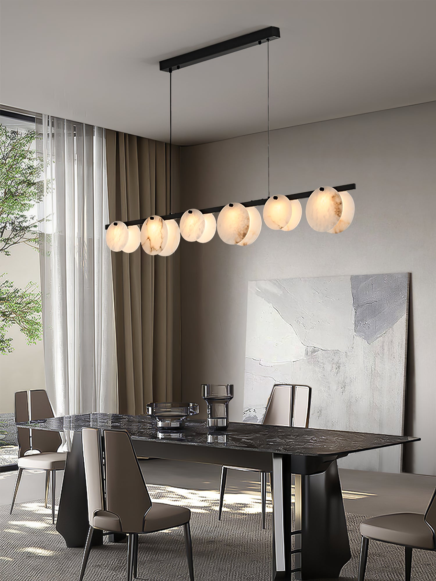 Tiedot Materiaali: messinki, alabasteri. Valonlähde: Integroitu LED (LED-valot on rakennettu valaisimeen, eikä niitä voi vaihtaa). Kelvin-alue: lämmin valo (3000K), neutraali valo (4000K), viileä valo (6000K). Jännite: AC 110-240V Runkopinnat: messinki, musta. Shade Finish: Valkoinen. Kosteudenkestävyys: IP 20 Kosteusluokitus käytettäväksi kylpyhuoneissa, keittiöissä ja katetuissa ulkotiloissa. Ympäristö: Sisätiloissa Johdot: kiinteä. Ohjaus: Yhteensopiva yleisten painokytkimien kanssa (ei sisälly). 59″ Säädettävä ripustuskorkeuskaapeli. Voidaan pidentää pyynnöstä.