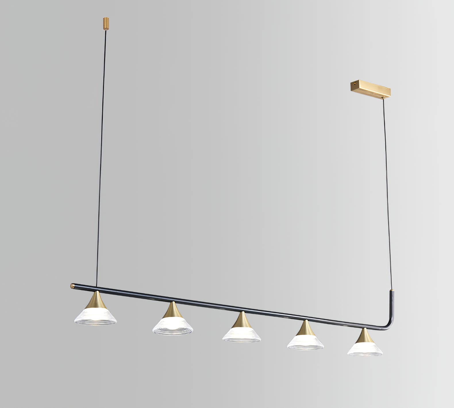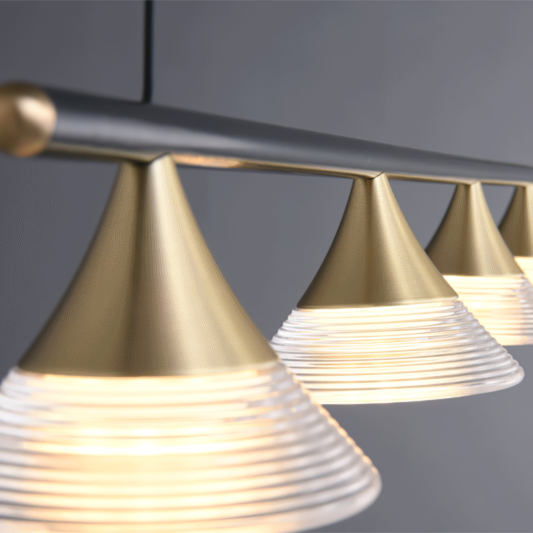 Tiedot Materiaali: messinki, akryyli. Valonlähde: Integroitu LED (LED-valot on rakennettu valaisimeen, eikä niitä voi vaihtaa). Kelvin-alue: lämmin valo (3000K), neutraali valo (4000K), viileä valo (6000K). Jännite: AC 110-240V Runkopinnat: musta, kulta. Shade Finish: Läpinäkyvä. Kosteudenkestävyys: IP 20 Kosteusluokitus käytettäväksi kylpyhuoneissa, keittiöissä ja katetuissa ulkotiloissa. Ympäristö: Sisätilat Johdot: kiinteä. Ohjaus: Yhteensopiva yleisten painokytkimien kanssa (ei sisälly). 59″ Säädettävä ripustuskorkeuskaapeli. Voidaan pidentää pyynnöstä.