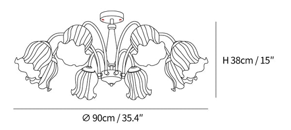 Anna lausunto missä tahansa huoneessa Trumpet Flower -kattokruunulla. Käsintehty hienoista lasiterälehdistä, sen tyylikäs sisustus ja ylelliset yksityiskohdat tuovat ripauksen hienostuneisuutta jokaiseen tilaan. Sen klassinen siluetti ja hienovarainen valaistus luovat täydellisen sävyn kotiisi. Tämän ajattoman lisävarusteen avulla voit nauttia luokan ja hienostuneen tunnelmasta.