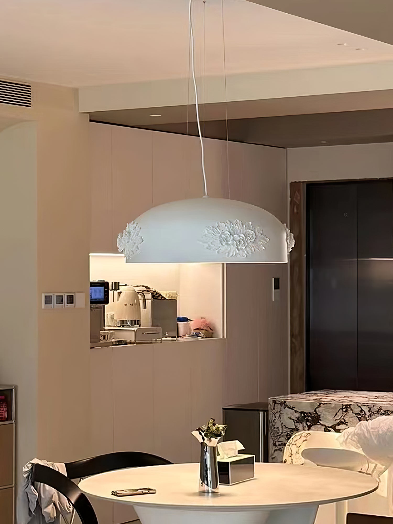 Lisää katseenvangitsija mihin tahansa huoneeseen Tuzzi-riippuvalolla. Tämä tyylikäs valaisin on valmistettu valkoisesta hartsista ja siinä on käsin veistettyjä aksentteja, ja se on koristeltu kristallikoristeilla, jotka lisäävät ylellisyyttä. Täydellinen sekä moderniin että klassiseen sisustukseen sopiva Tuzzi-riippuvalaisin tuo hienostuneisuutta mihin tahansa sisustukseen.