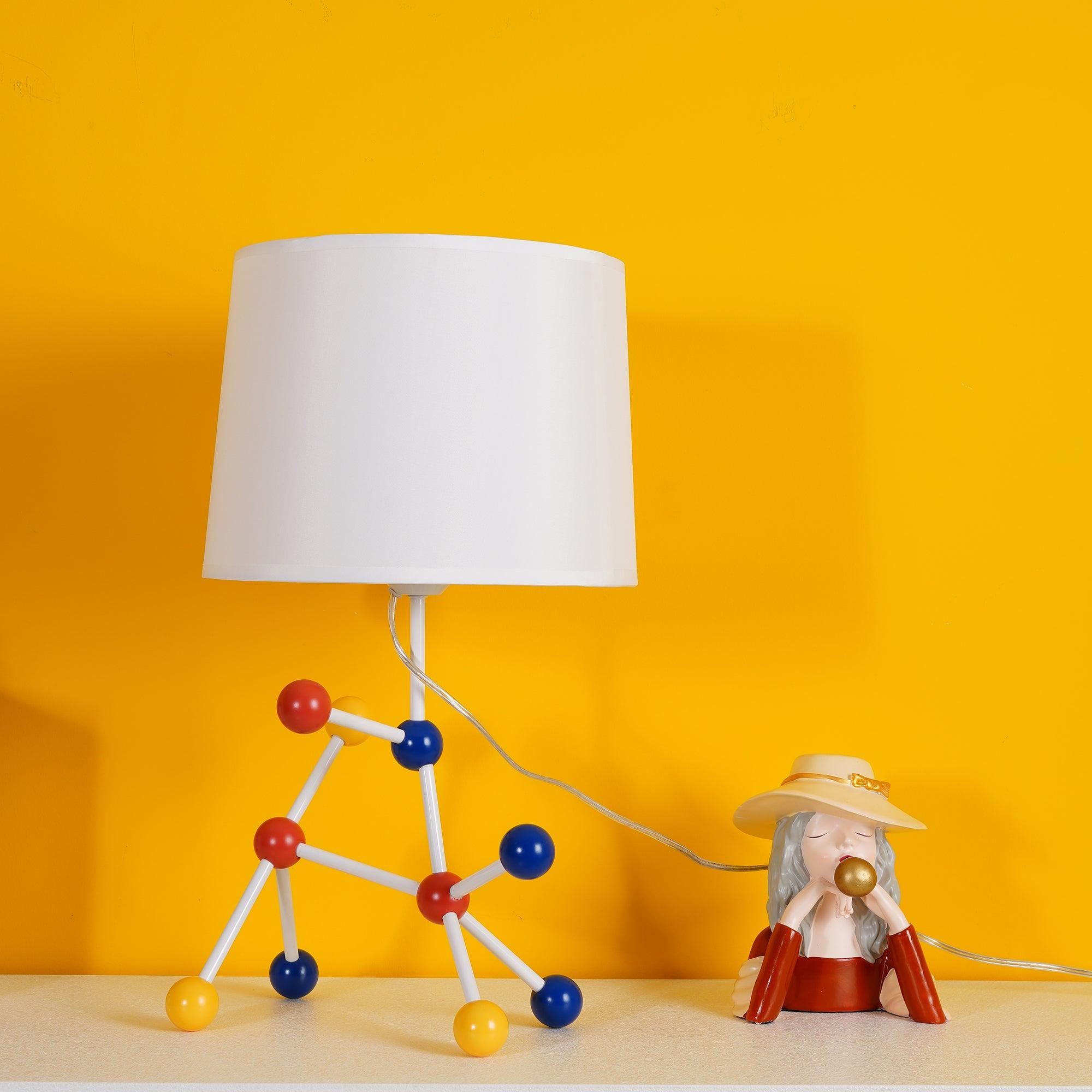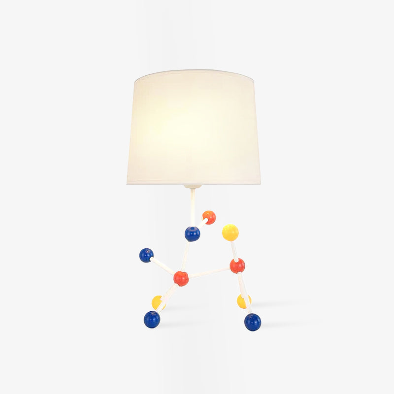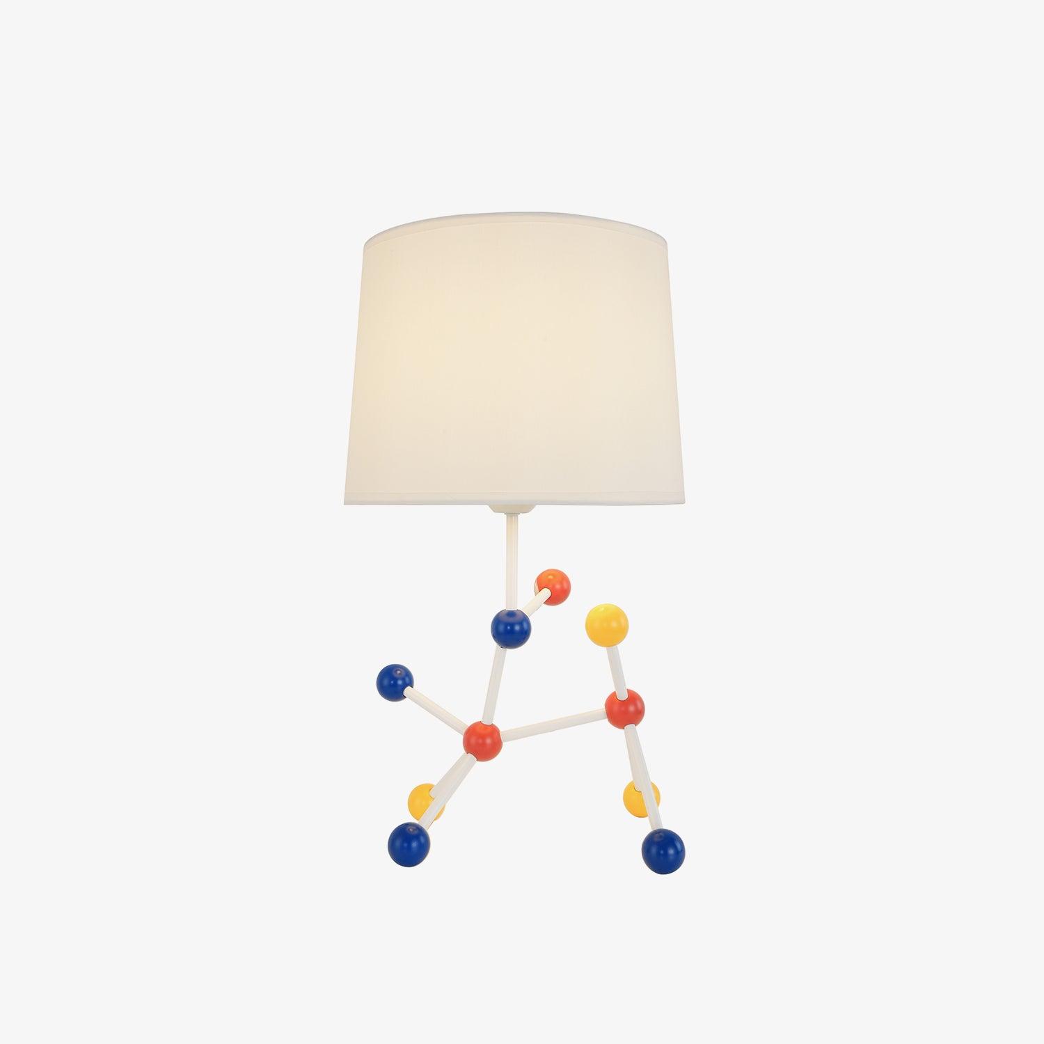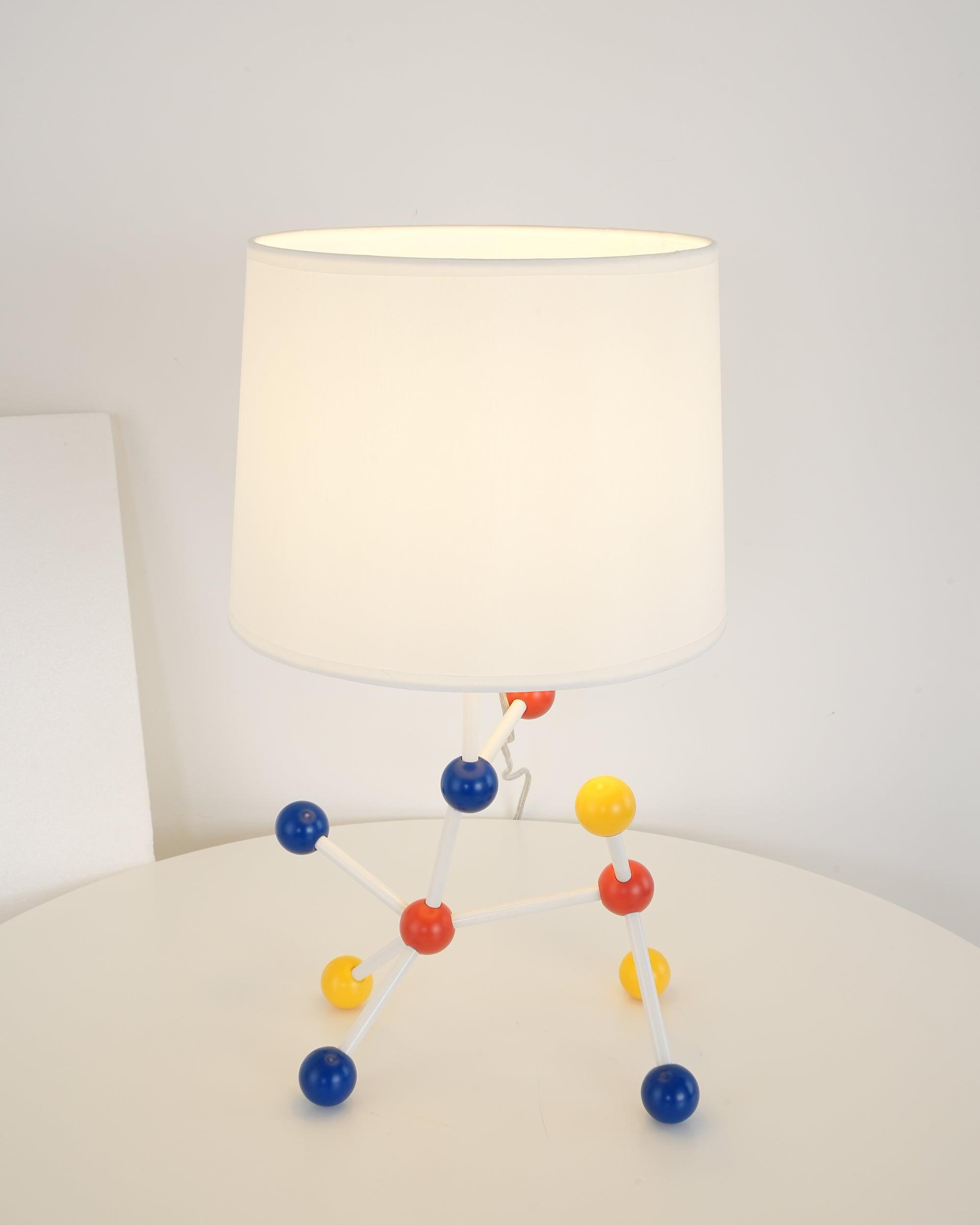Vintage-molekyylimalleihin palaava pöytävalaisin on moderni ja leikkisä. Taidokas, idealisoidun muodon rypäle, jonka päällä on valkoinen kangasvarjostin, katseenvangitsija pallomme lepää kiinteällä valkoisella pohjalla.