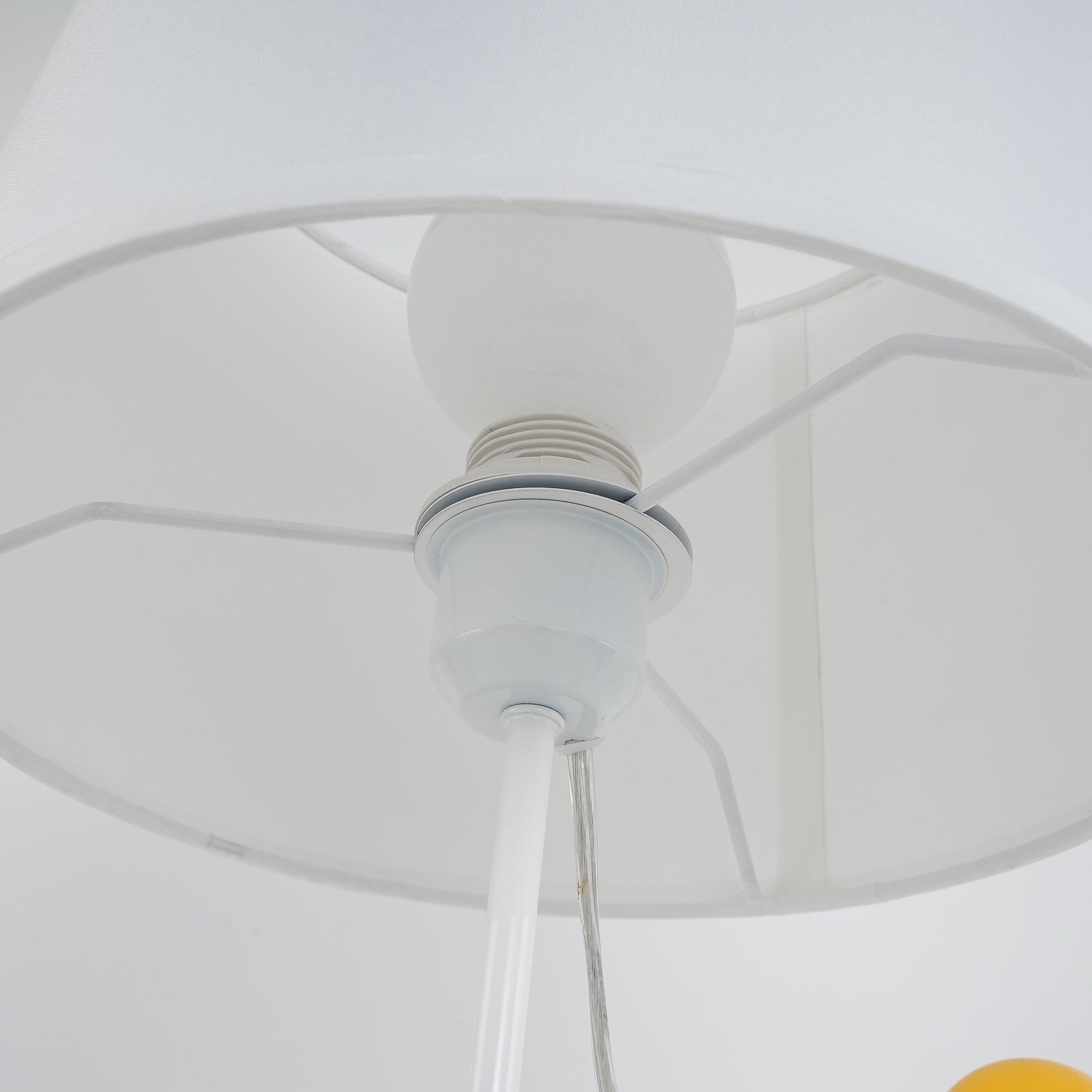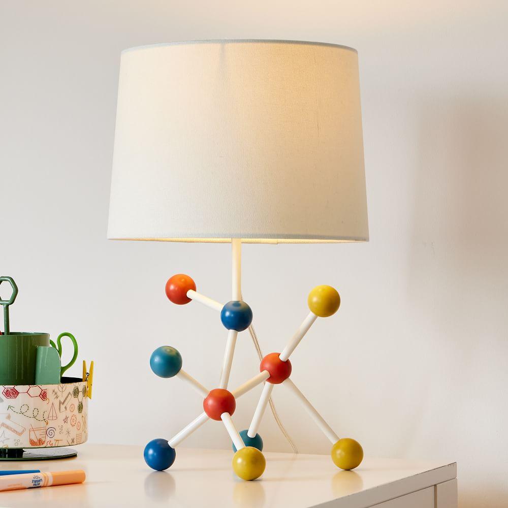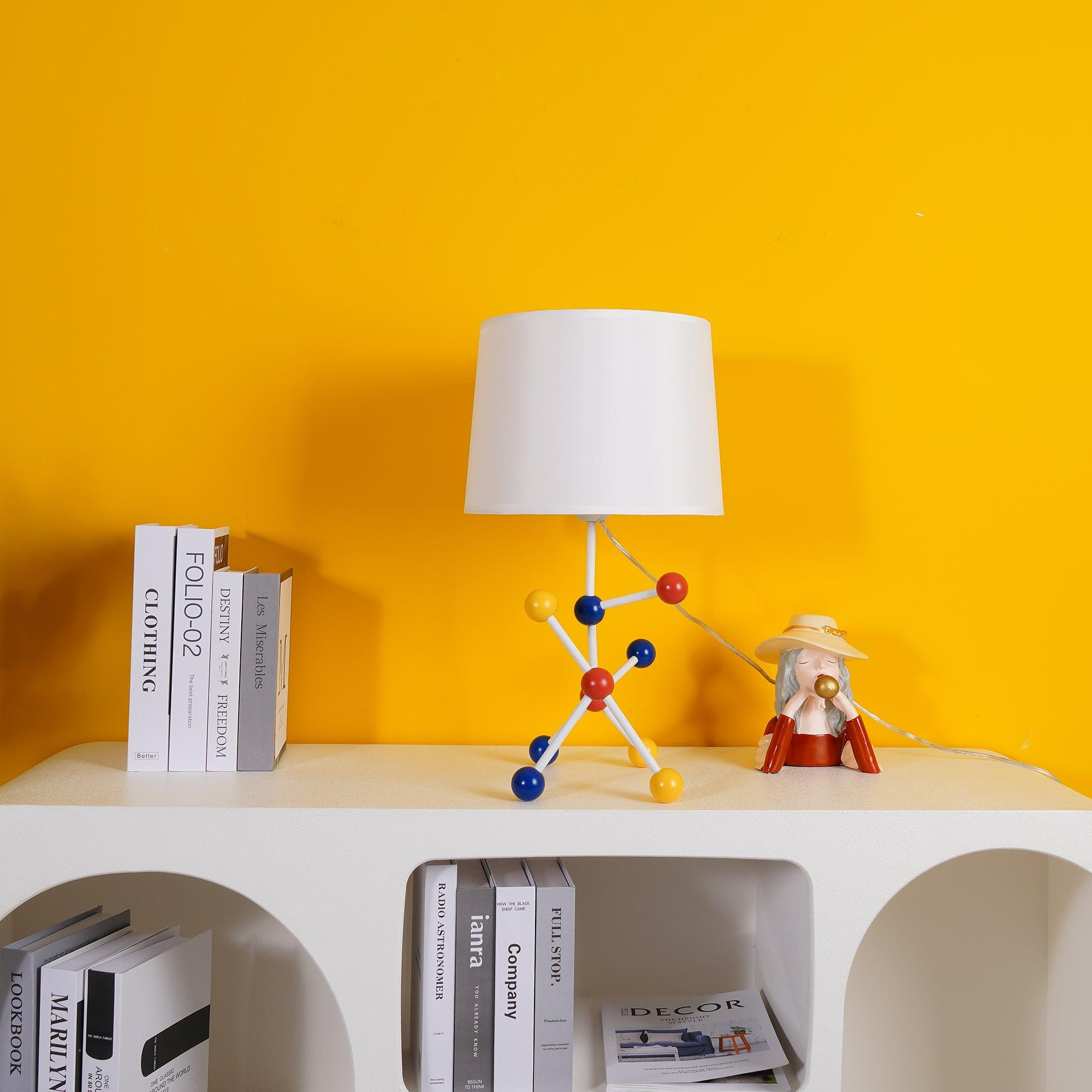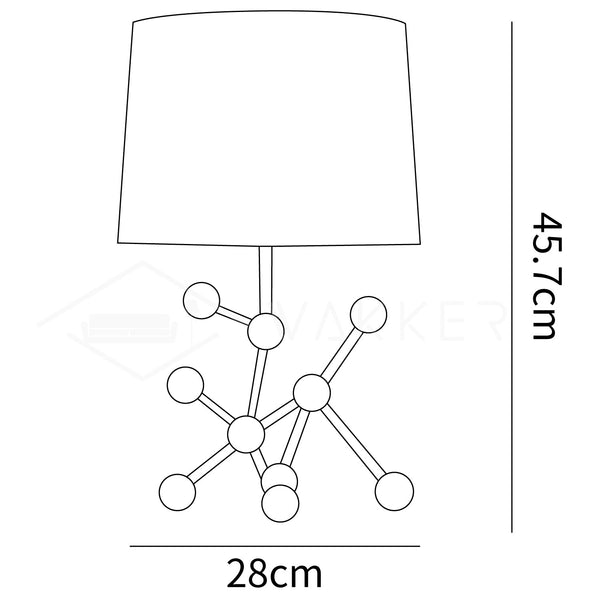 Vintage-molekyylimalleihin palaava pöytävalaisin on moderni ja leikkisä. Taidokas, idealisoidun muodon rypäle, jonka päällä on valkoinen kangasvarjostin, katseenvangitsija pallomme lepää kiinteällä valkoisella pohjalla.