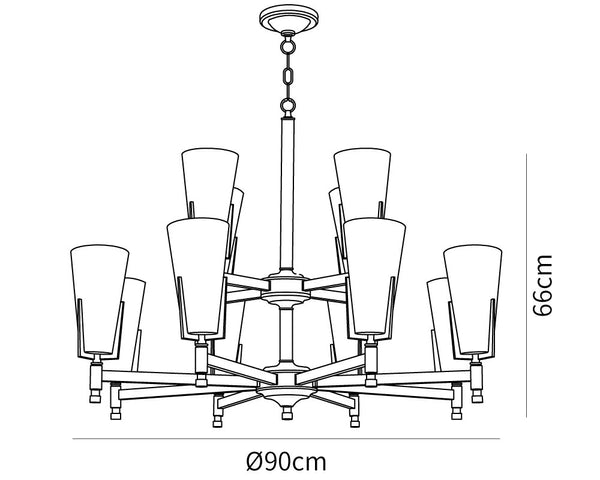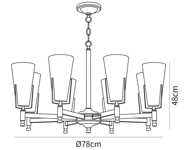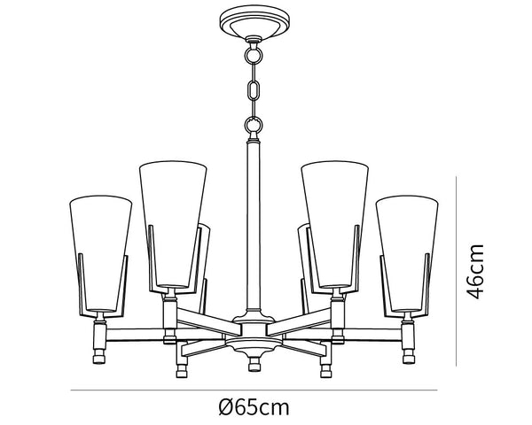 Valitse myymälästämme Upton Chandelier luodaksesi taiteellisen auran ruokailu- tai olohuoneeseen yhdistämällä lasin ja messingin sekoitukseen tyylikkäitä kupin varjostimia ja tyylikkäitä geometrisia kehyselementtejä.