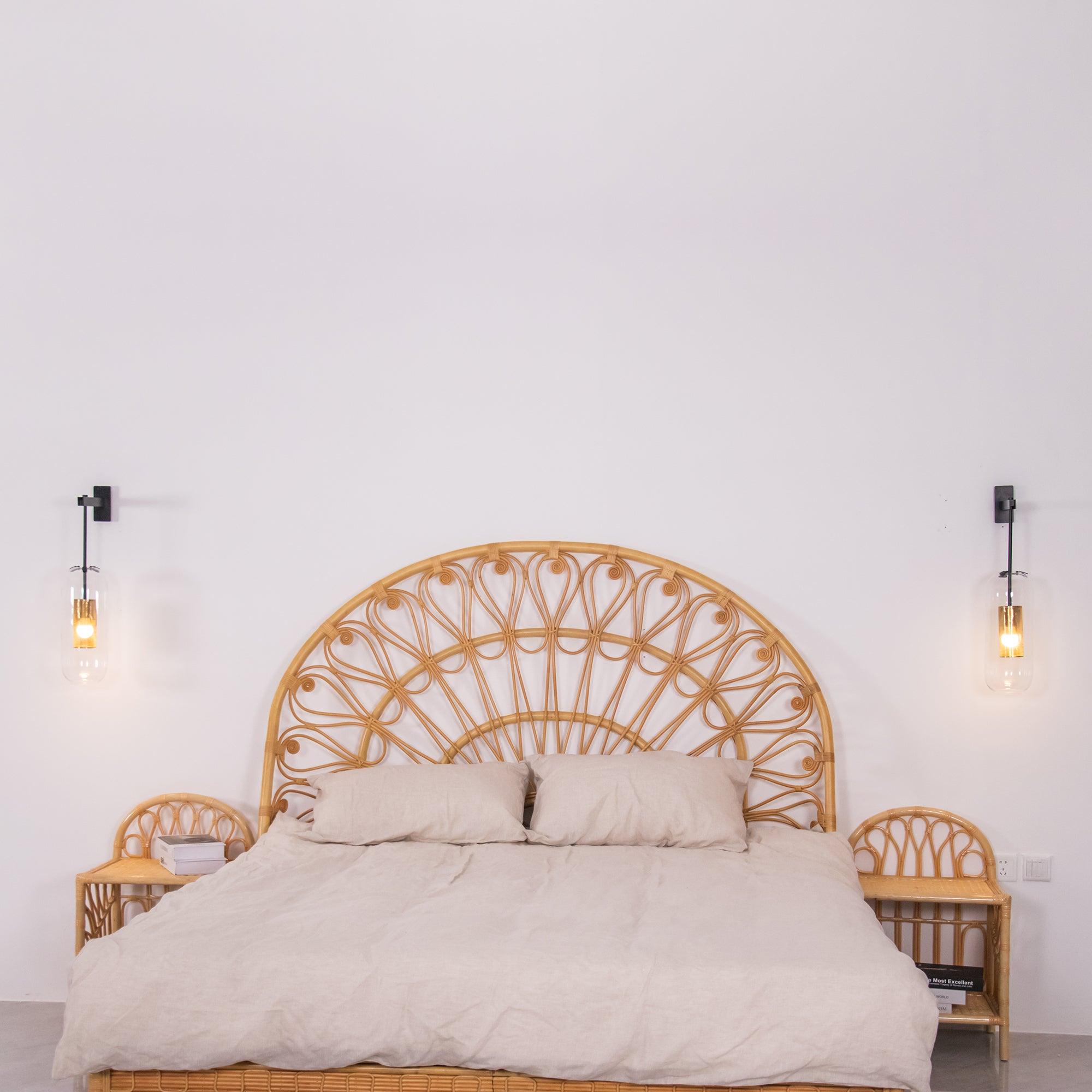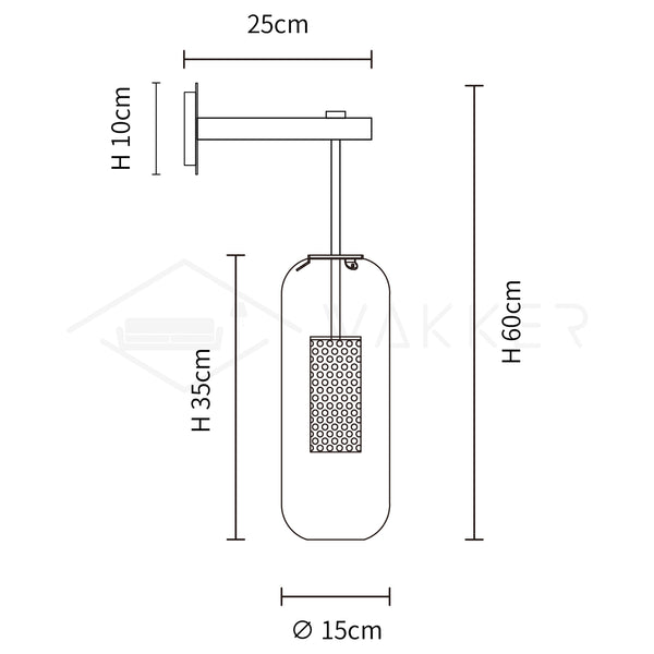 Majesteettisessa Vadim-seinävalaisimessa on runsas lasirunko, joka erottuu hienosta terästankosta. Ilmassa ripustettu rei'itetty häkki lähettää pehmeää valoa ja heijastaa graafisia heijastuksia seinille.