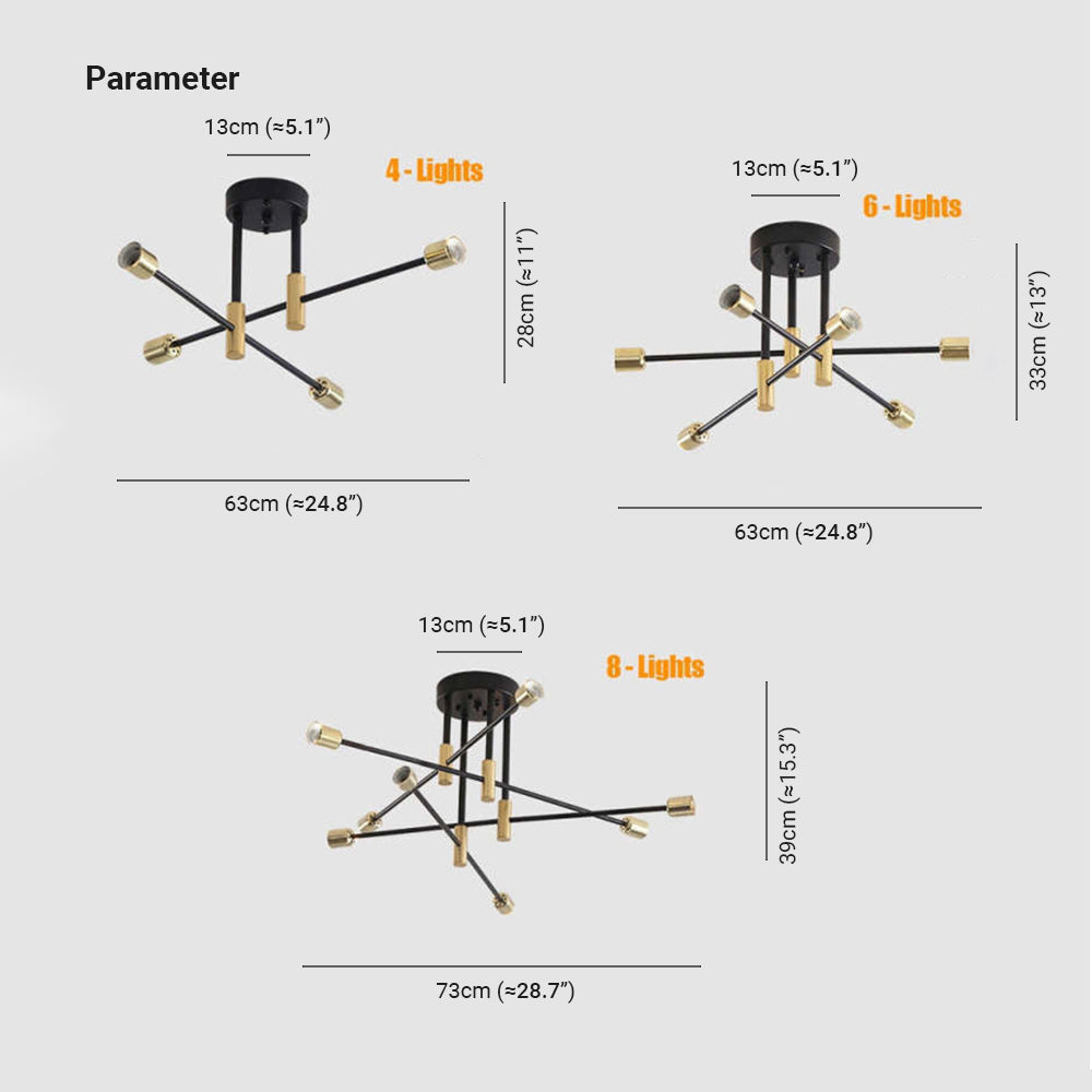 Valentina Retro Satellite Shape Metal Kattovalaisin, musta/kulta, 4/6/8 Head