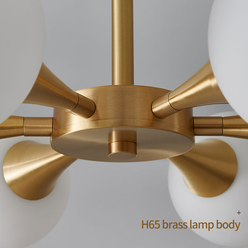 - Tässä riippuvalaisimen mestariteoksessa on 4–6 pyöreää päätä, jotka on yhdistetty tyylikkäästi toisiinsa ja joissa kussakin on hehkulamppu. Tämä järjestely ei ainoastaan optimoi valaistusta, vaan toimii myös silmiinpistävänä keskipisteenä, kiehtovana huomion ja herättäen keskusteluja. Kirkkaan ja valkoisen lasielementtien välinen vuorovaikutus parantaa entisestään visuaalista vetovoimaa luoden lumoavan valon ja varjojen leikin.