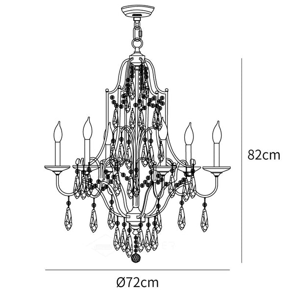 Liikkeemme Valentina-valaistusmallisto on nimetty latinan sanan mukaan, joka tarkoittaa "vahva ja rohkea", ja oikeutetusti. Pajuinen kehys on viimeistelty raudalla, ja kirkkaat kiillotetut lasikiteet koristavat jokaista kappaletta, mikä lisää entisestään eleganssia. Jokainen kynttelikkötyylinen lamppu istuu omassa kirkkaassa, kristallisessa bobechessaan.