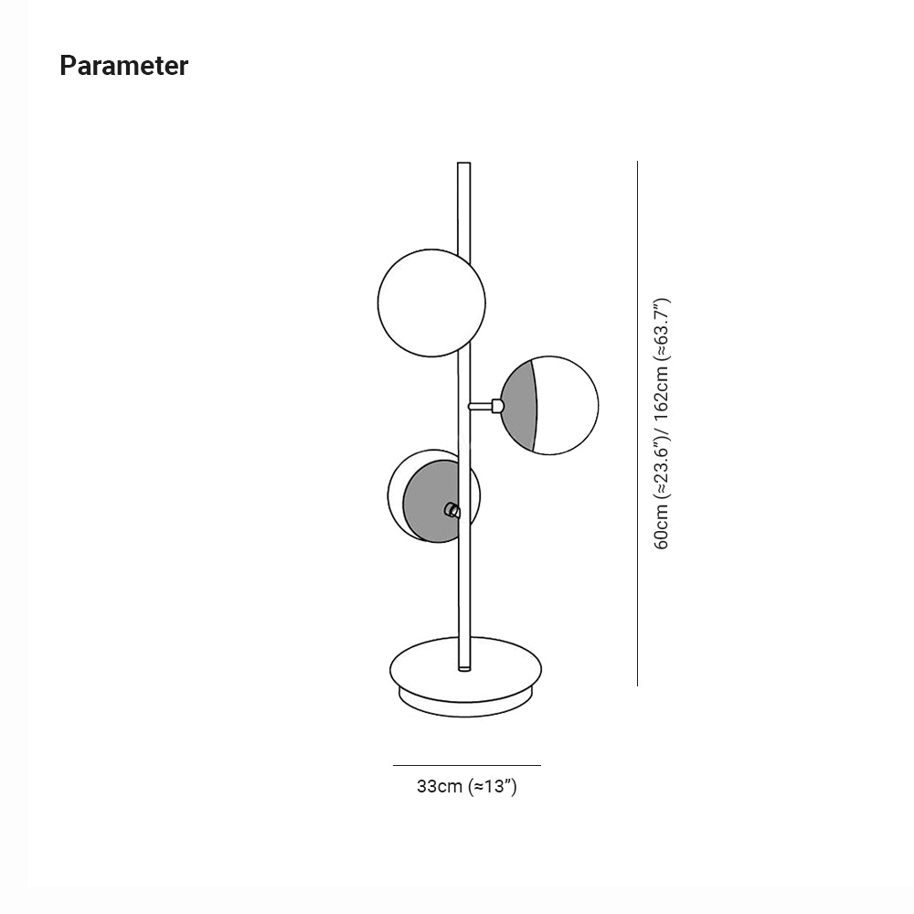 - Oksaran muotoisen kehyksen päällä on pallovarjostin, joka muistuttaa pientä pystysuoraa puuta, ja useat sävyt antavat tälle lampulle laajalle levinneen valonlähteen, jossa on laaja valaistusalue.