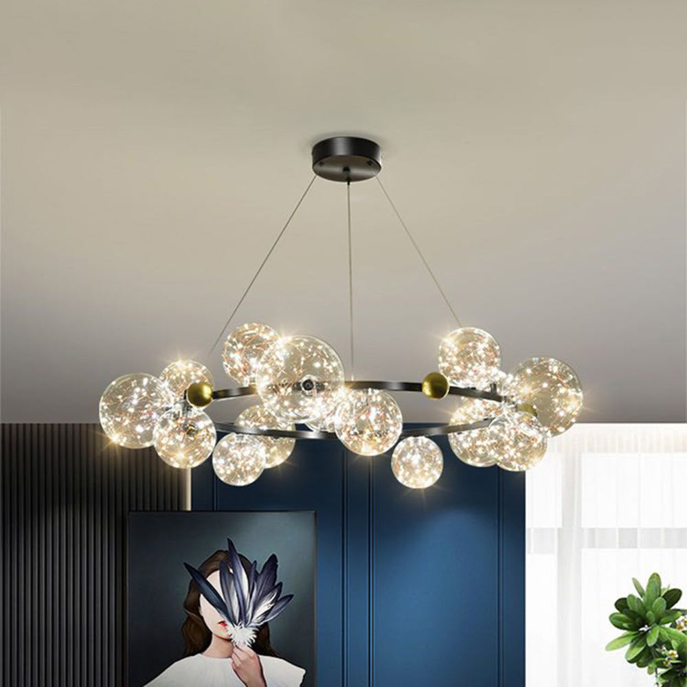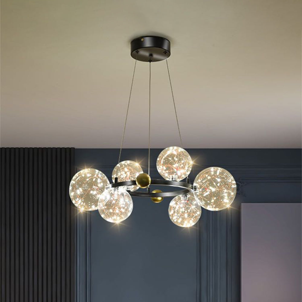 Valentina Art Deco Globe metalli/lasiriippuvalaisin, musta/kulta
