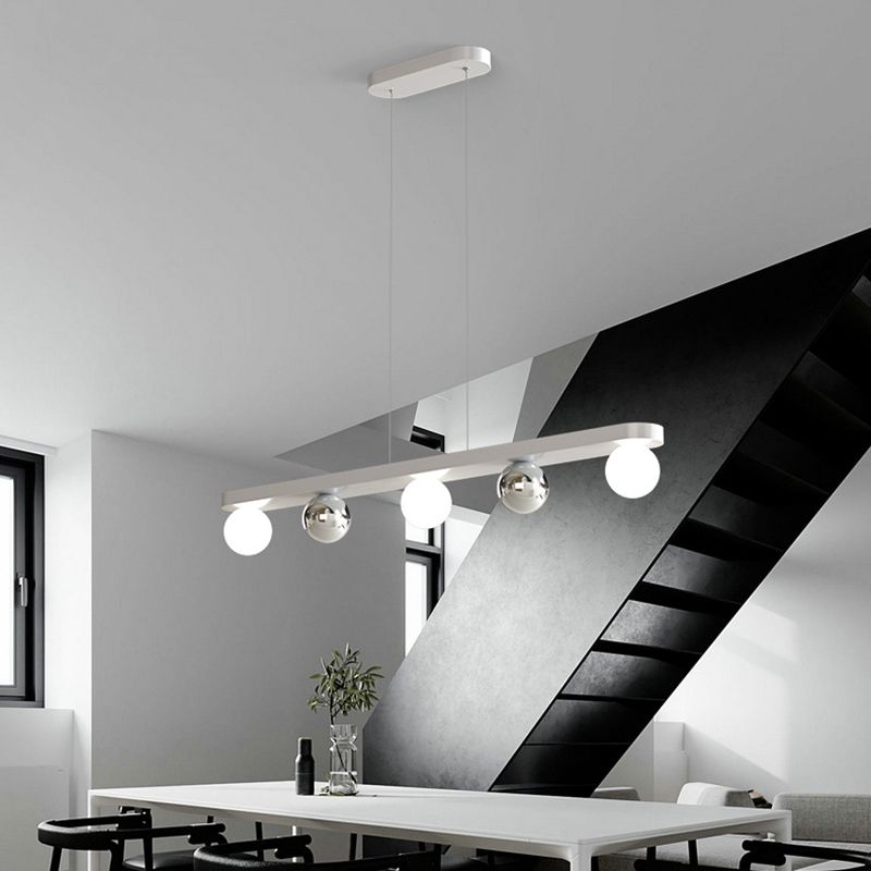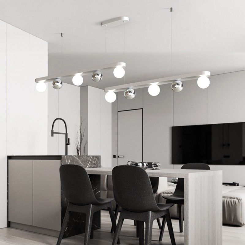 Tässä riippuvalaisimessa on monipäinen pallomainen muotoilu, jossa jokainen pallomainen varjostin yhdistyy toisiinsa muodostaen integroidun valorakenteen. Maapallon muotoilu on sekä modernia että siinä on ripaus geometrista kauneutta, mikä tuo tilaan ainutlaatuisen muodon ja taiteellisuuden.Tyylikkään ulkonäön ja monipäisen pallomaisen muotoilunsa ansiosta tämä riippuvalaisin sopii erinomaisesti käytettäväksi julkisissa tiloissa, kuten olohuoneissa, ruokailuhuoneissa ja työhuoneissa.