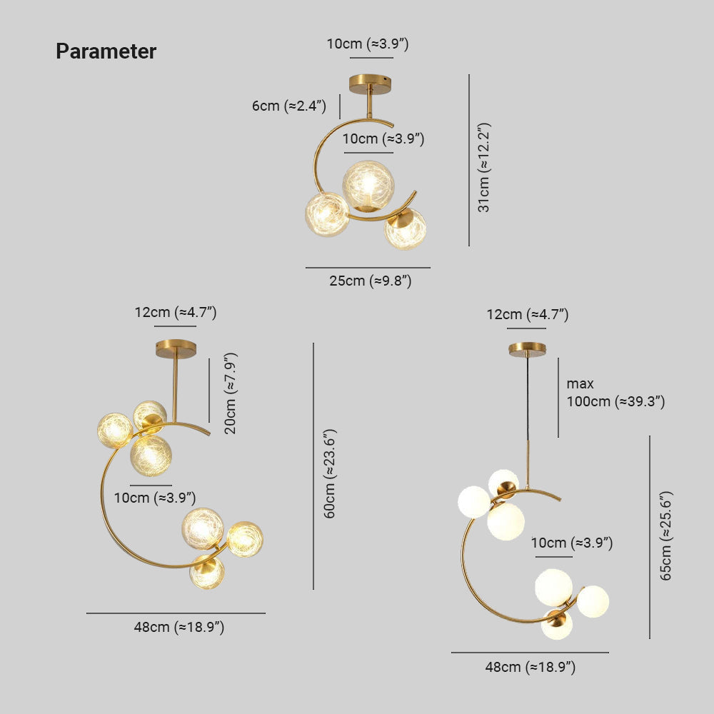 Valentina Modern Glass Globe -riippuvalaisin, metallia ja lasia, 3 tyyliä