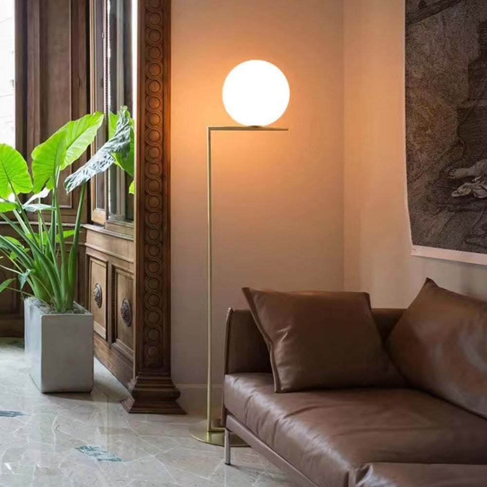 Valentina Moderni suorakulmainen maapallo metalli/lasi seisova lattiavalaisin, messinki/hopea
