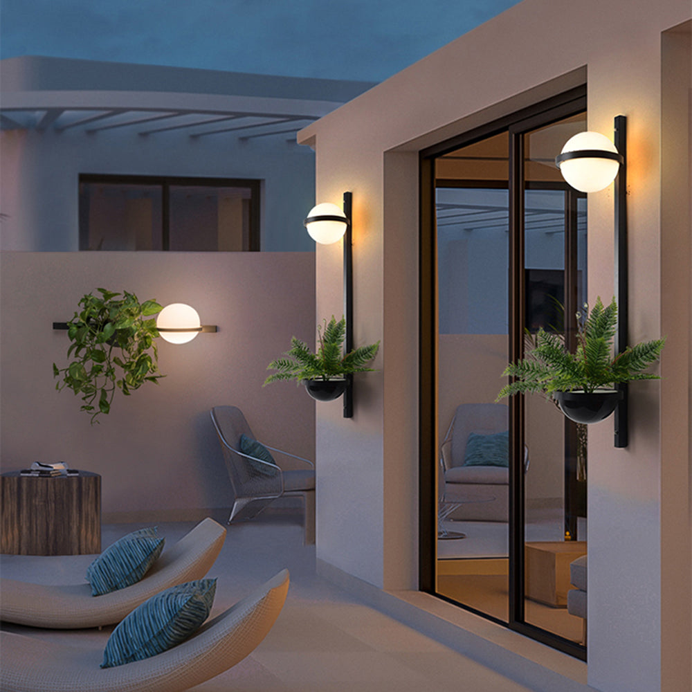 Valentina Modern Globe metalli/akryyli aurinkoseinävalaisimen kasviruukku, musta/valkoinen