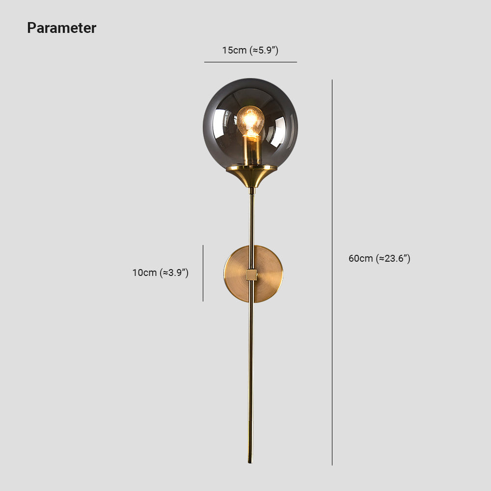Valentina Modern Globe metalli/lasi seinävalaisin, harmaa/keltainen/kirkas/valkoinen