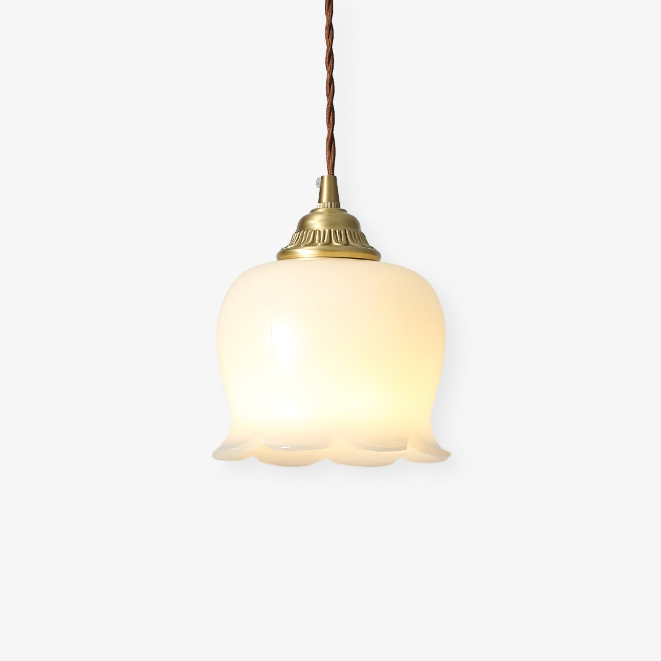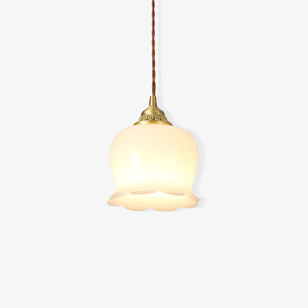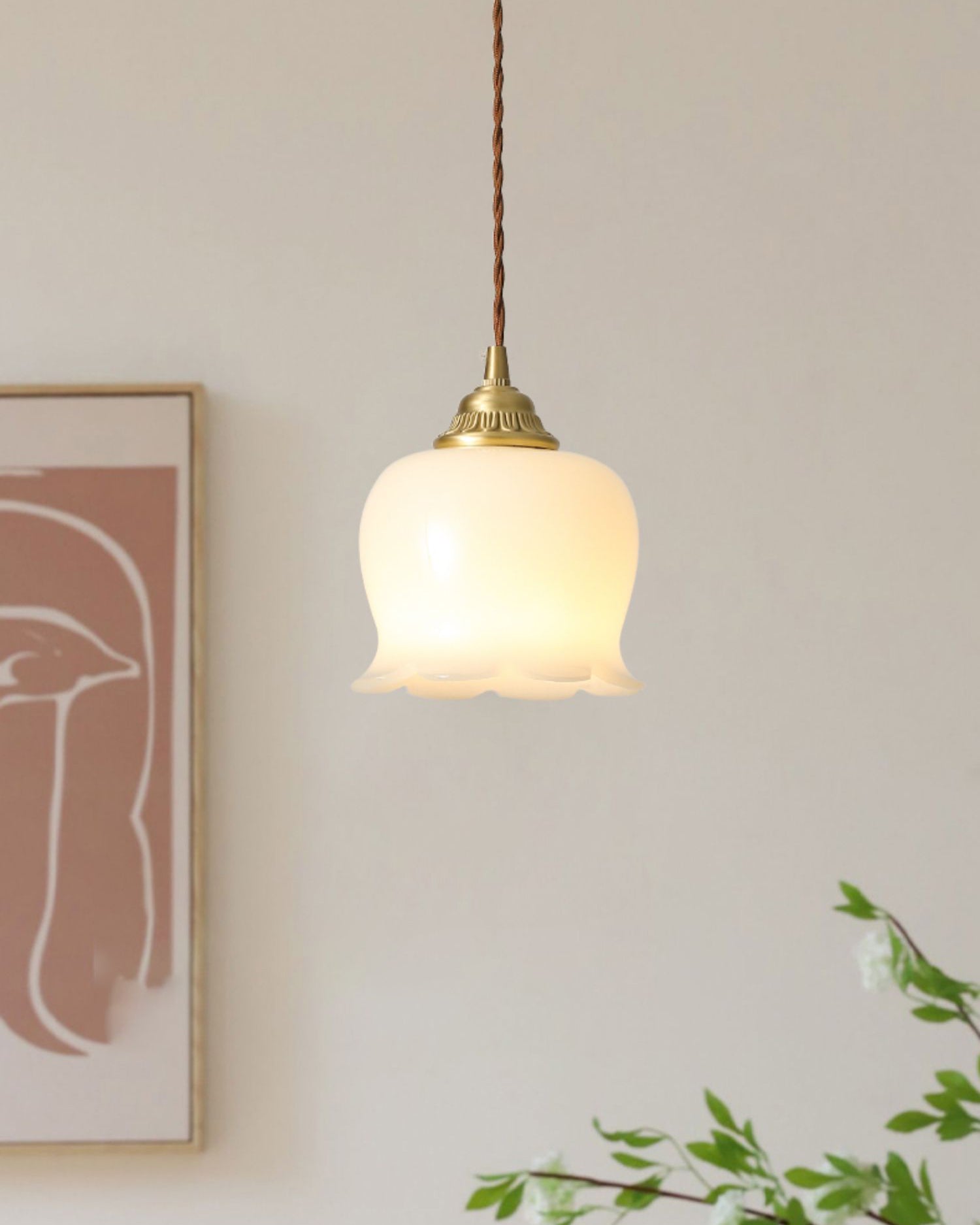 Laakson kielo-riippuvalaisin on herkkä kukkamuotonsa näköinen kuin seinällä kukkivat kukat, mikä on täynnä taiteellista tajua kotona. Klassisen kuparipohjan lampun varsi on herkkä ja kaunis.