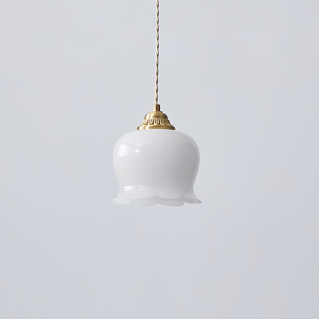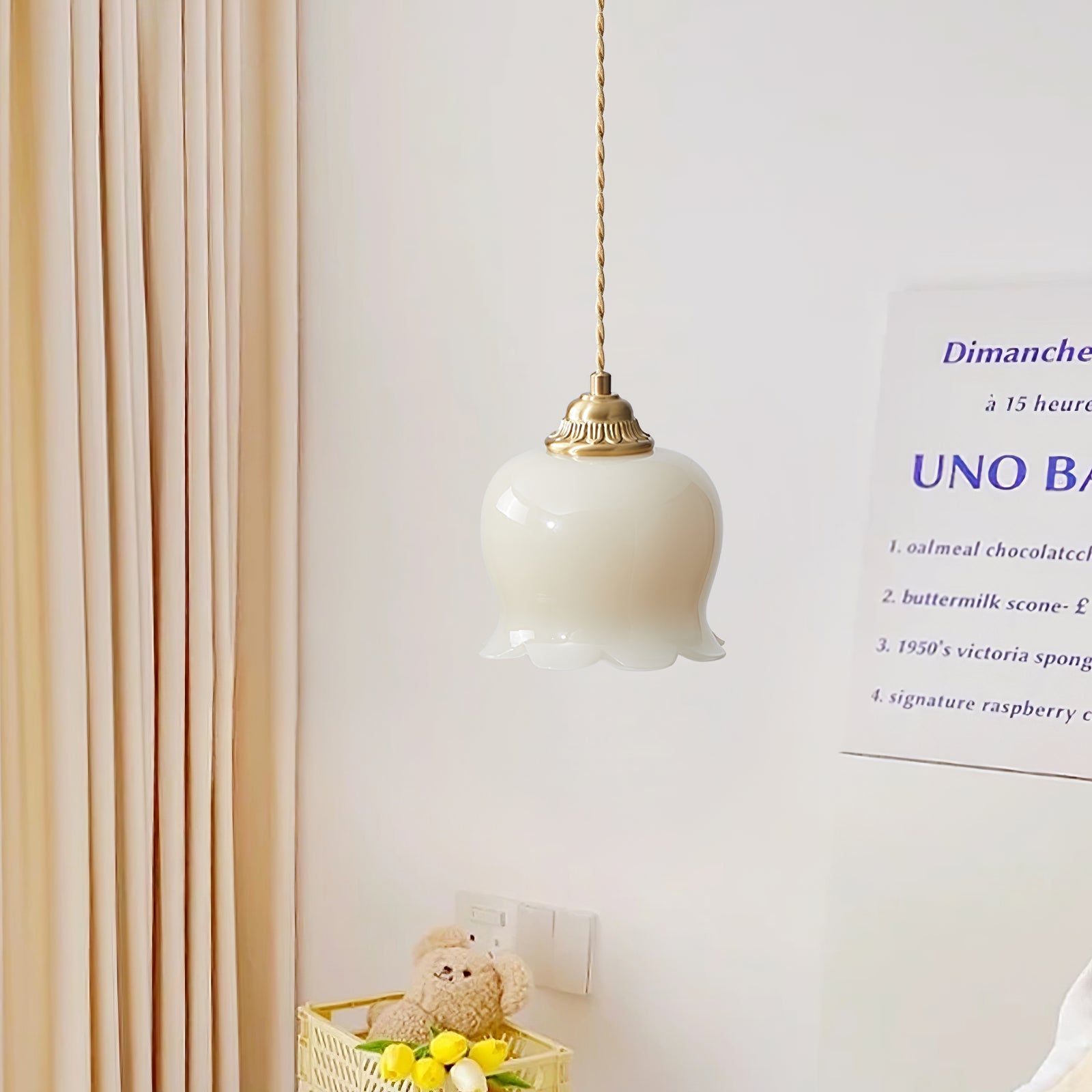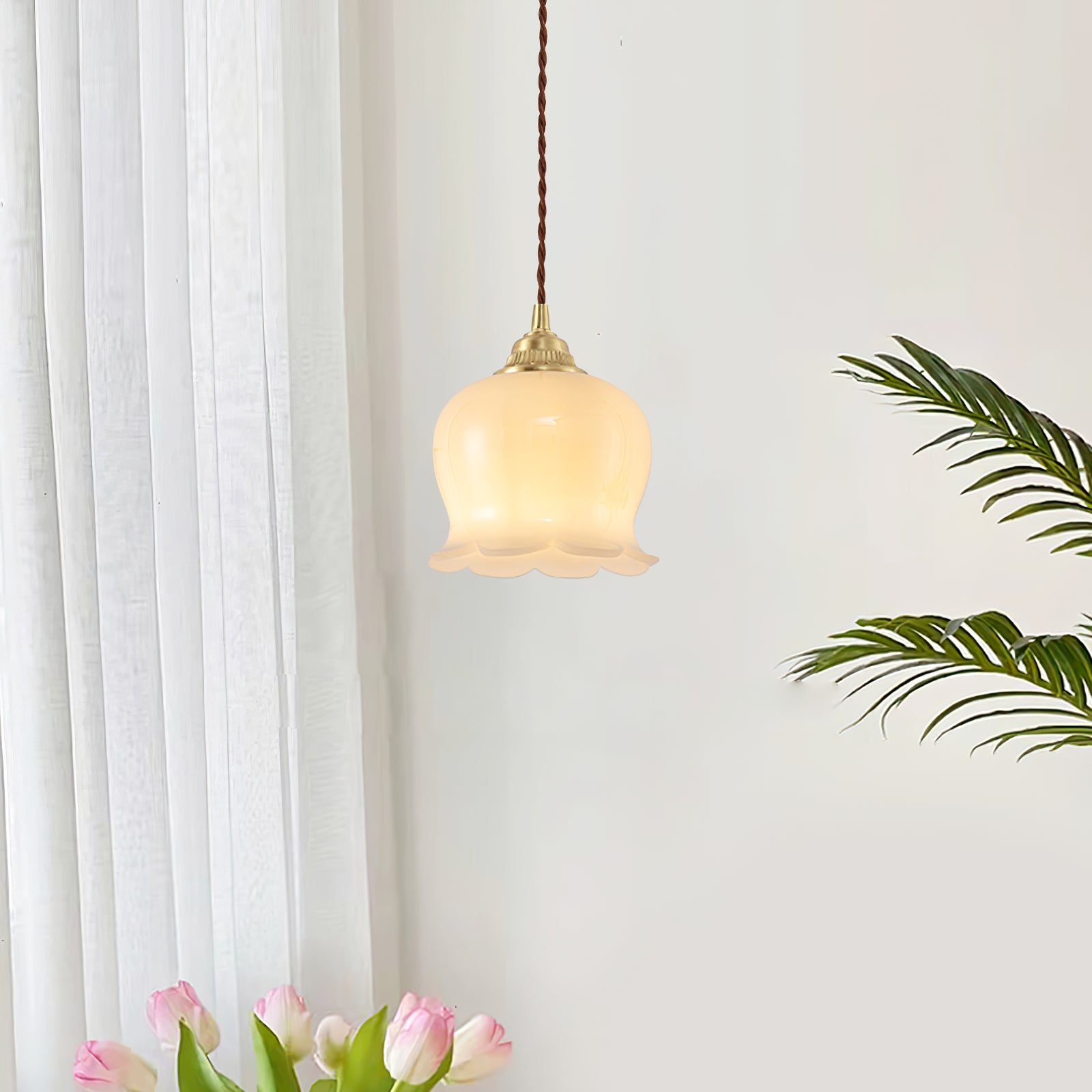 Laakson kielo-riippuvalaisin on herkkä kukkamuotonsa näköinen kuin seinällä kukkivat kukat, mikä on täynnä taiteellista tajua kotona. Klassisen kuparipohjan lampun varsi on herkkä ja kaunis.
