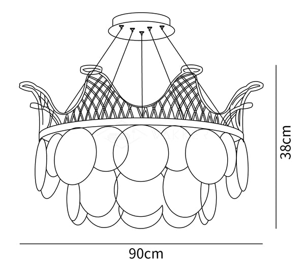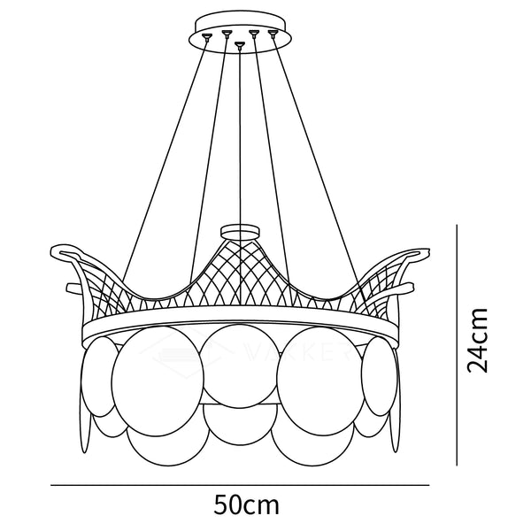 Vassar Crown Kattokruunua voidaan ohjata vapaasti kolmivärisellä himmennyksellä, ja erilaiset värilämpötilat luovat erilaisia tunnelmia, ja Shell Glass paljastaa tasaisesti hellävaraisen kiillon. jokapäiväisen elämän erilaisiin valaistustarpeisiin.