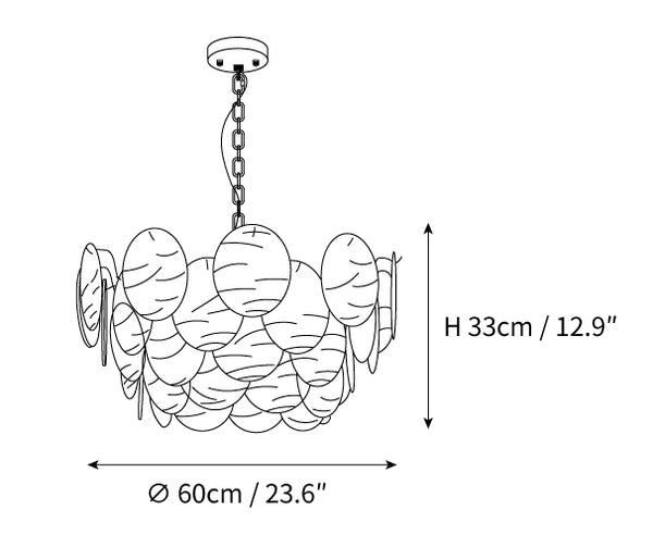 Koko: Halkaisija 60 cm x K 33 cm / ∅ 23,6" x K 12,9" (E14*9)