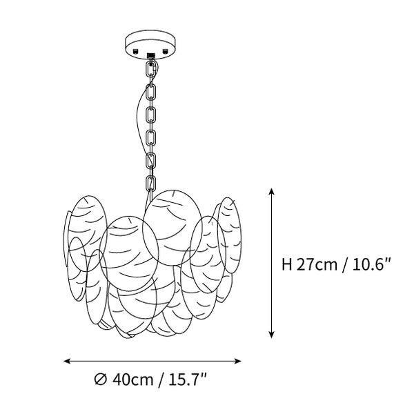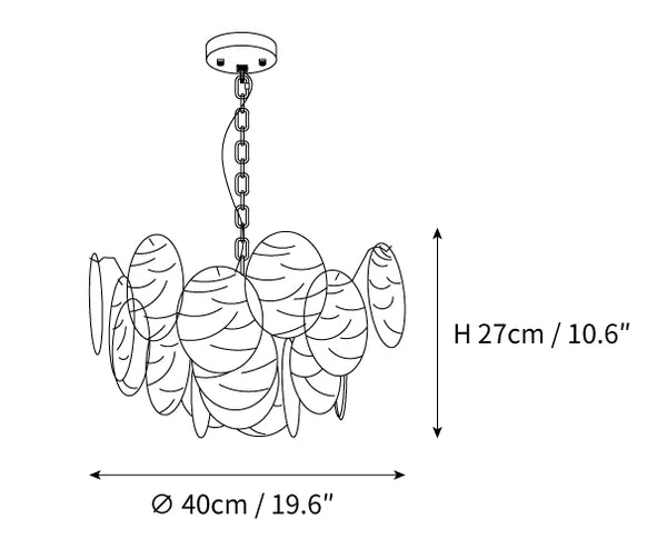 19,7″ riippukorkea ripustusketju. Voidaan pidentää pyynnöstä.