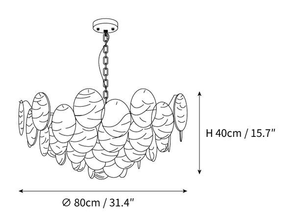Koko: Halkaisija 80 cm x K 40 cm / ∅ 31,4" x K 15,7" (E14*12)