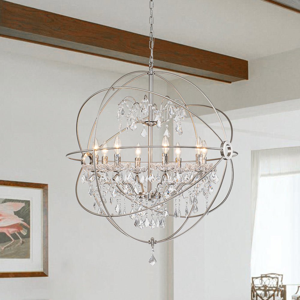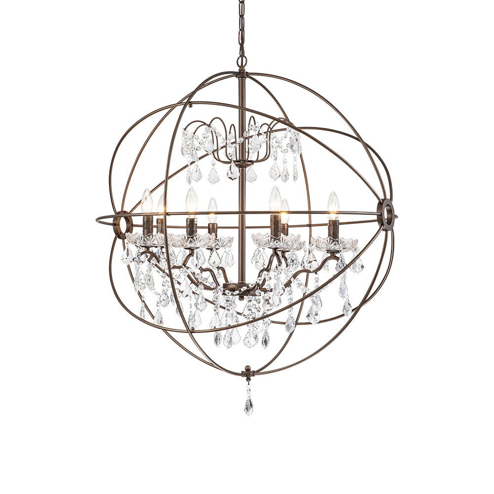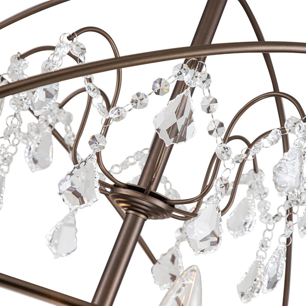 Kahdeksan valoa • Kristallikorostukset • Avoin pallokehys • Öljytty, hierottu pronssi/nikkelipinta • E12 kynttelikköpolttimot (ei sisälly) • Kiinteä • UL-listattu