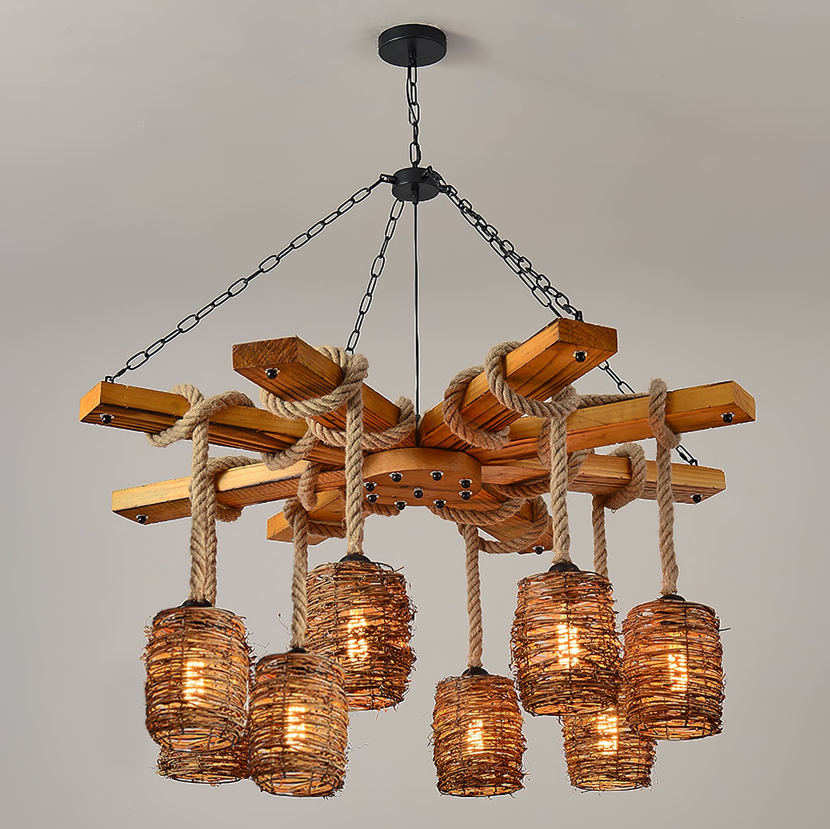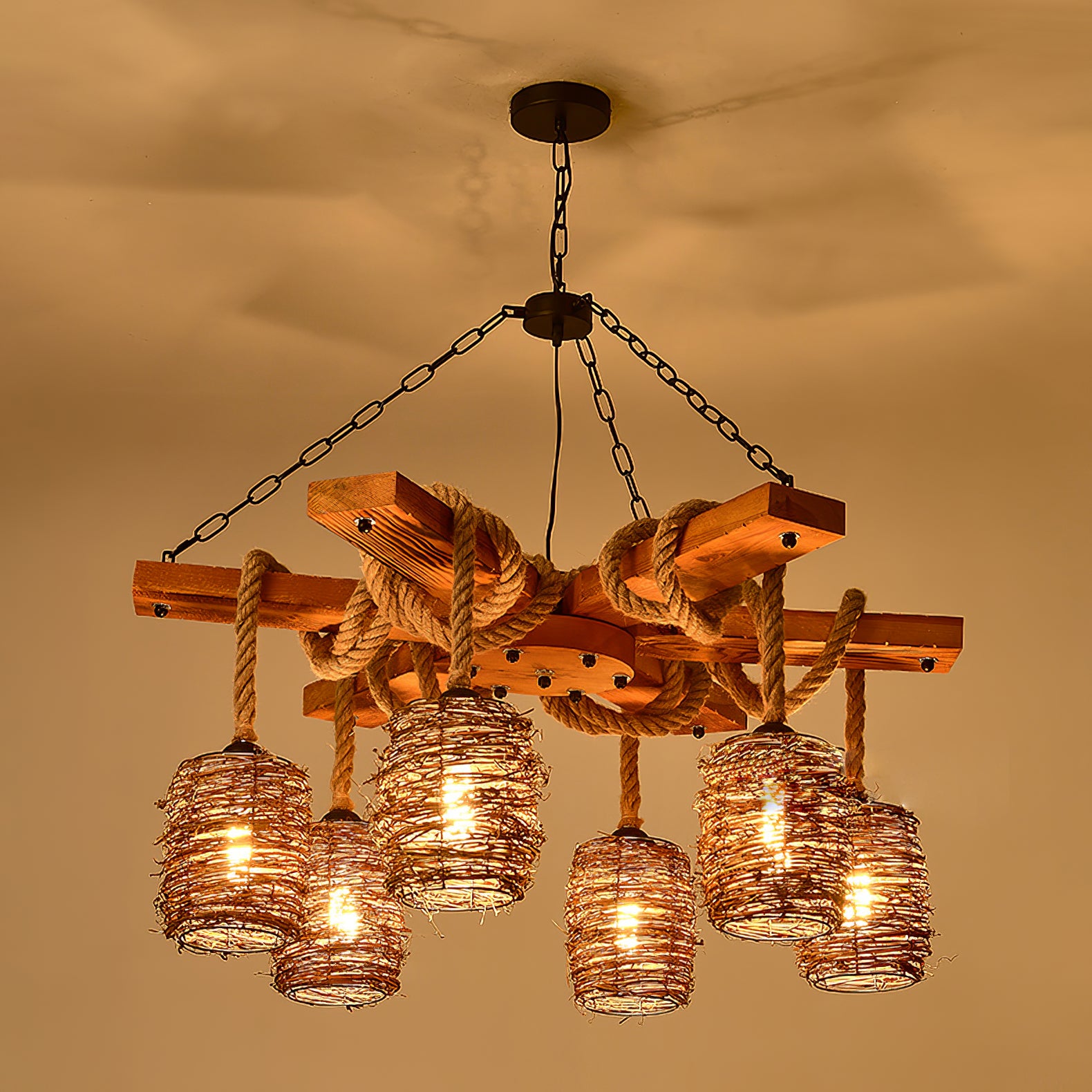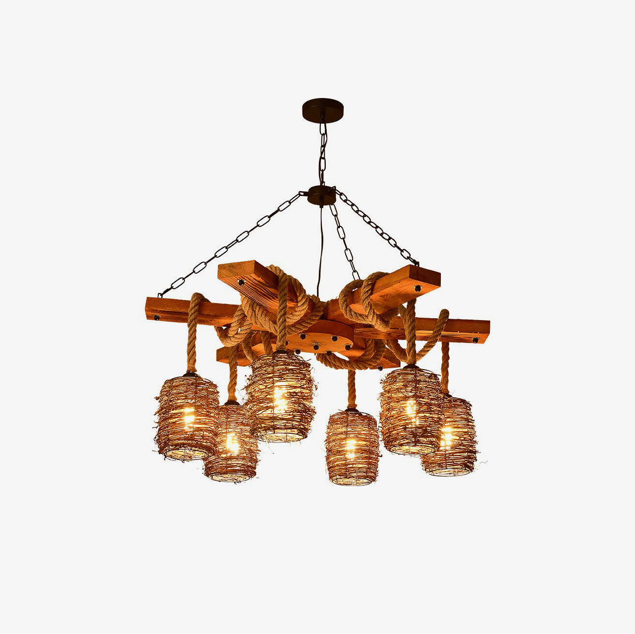 Tämä retrotyylikäs kattokruunu on valmistettu rottinkivarjostimesta ja puumateriaalista, jonka ainutlaatuinen muoto tekee siitä katseenvangitsijan kohokohdan kotiisi. ja se antaa kotiisi kirkkaan, mutta ei ankaran valon, antaen sille lämpimän ja kodikkaan tunnelman.