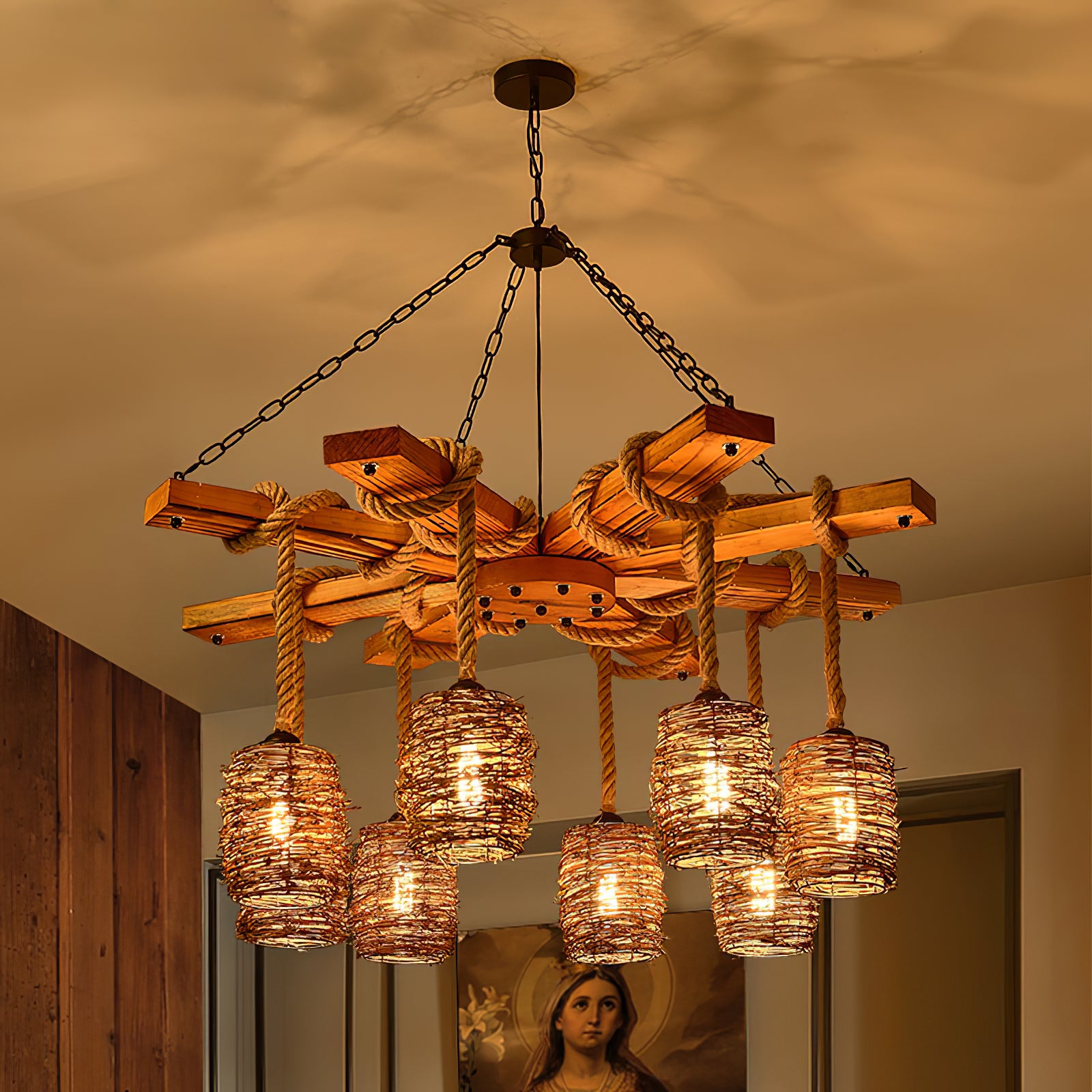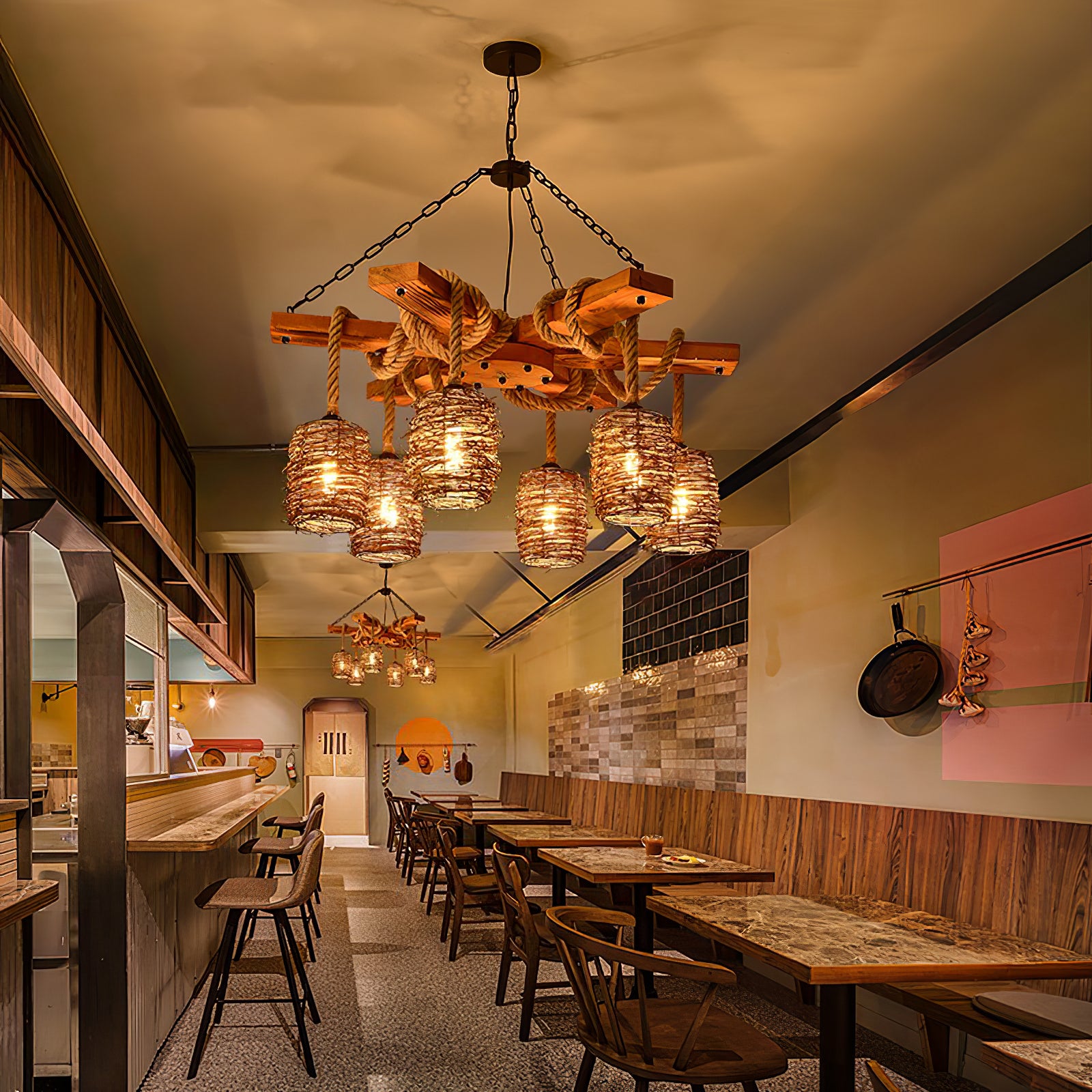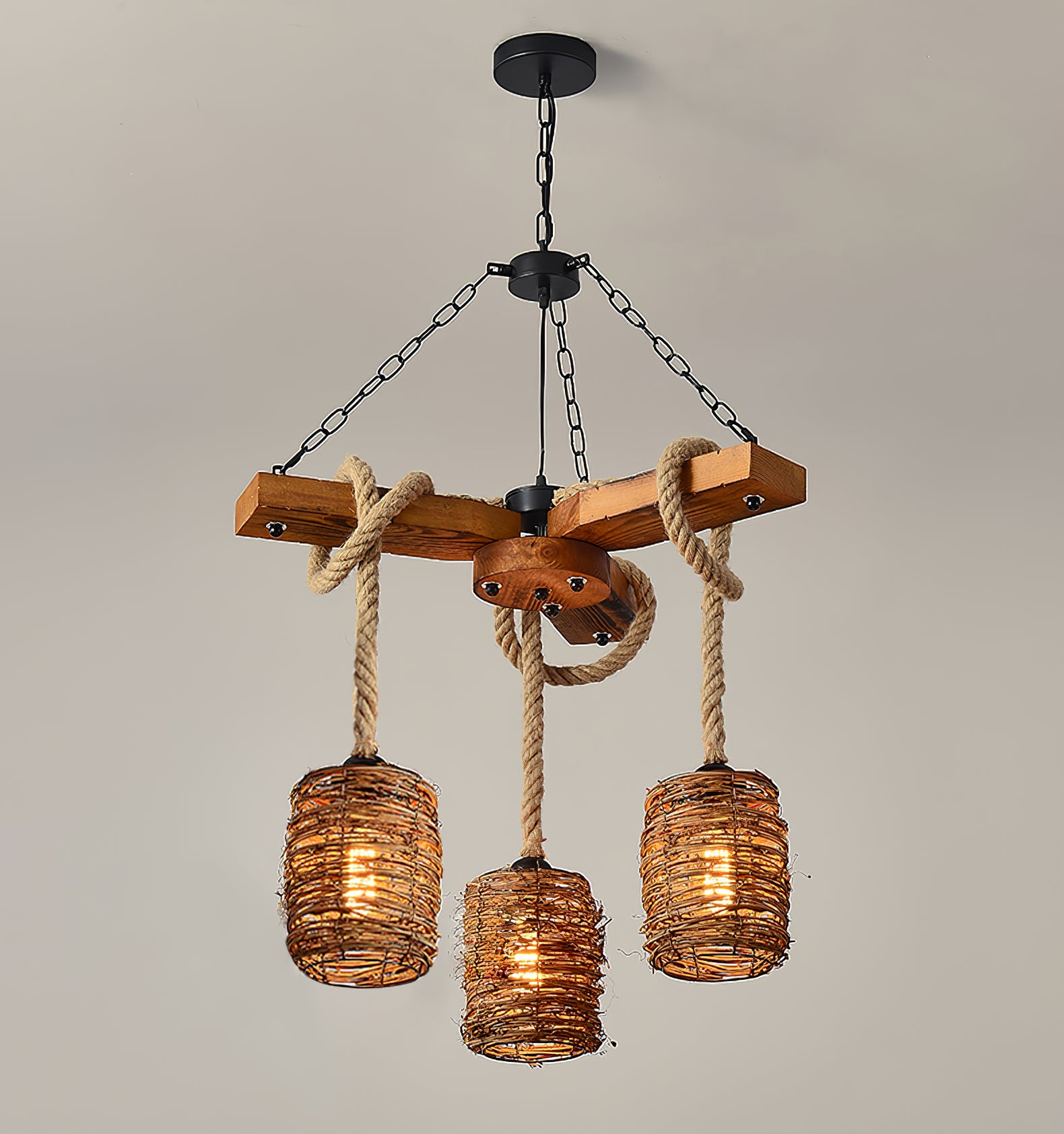 Tämä retrotyylikäs kattokruunu on valmistettu rottinkivarjostimesta ja puumateriaalista, jonka ainutlaatuinen muoto tekee siitä katseenvangitsijan kohokohdan kotiisi. ja se antaa kotiisi kirkkaan, mutta ei ankaran valon, antaen sille lämpimän ja kodikkaan tunnelman.