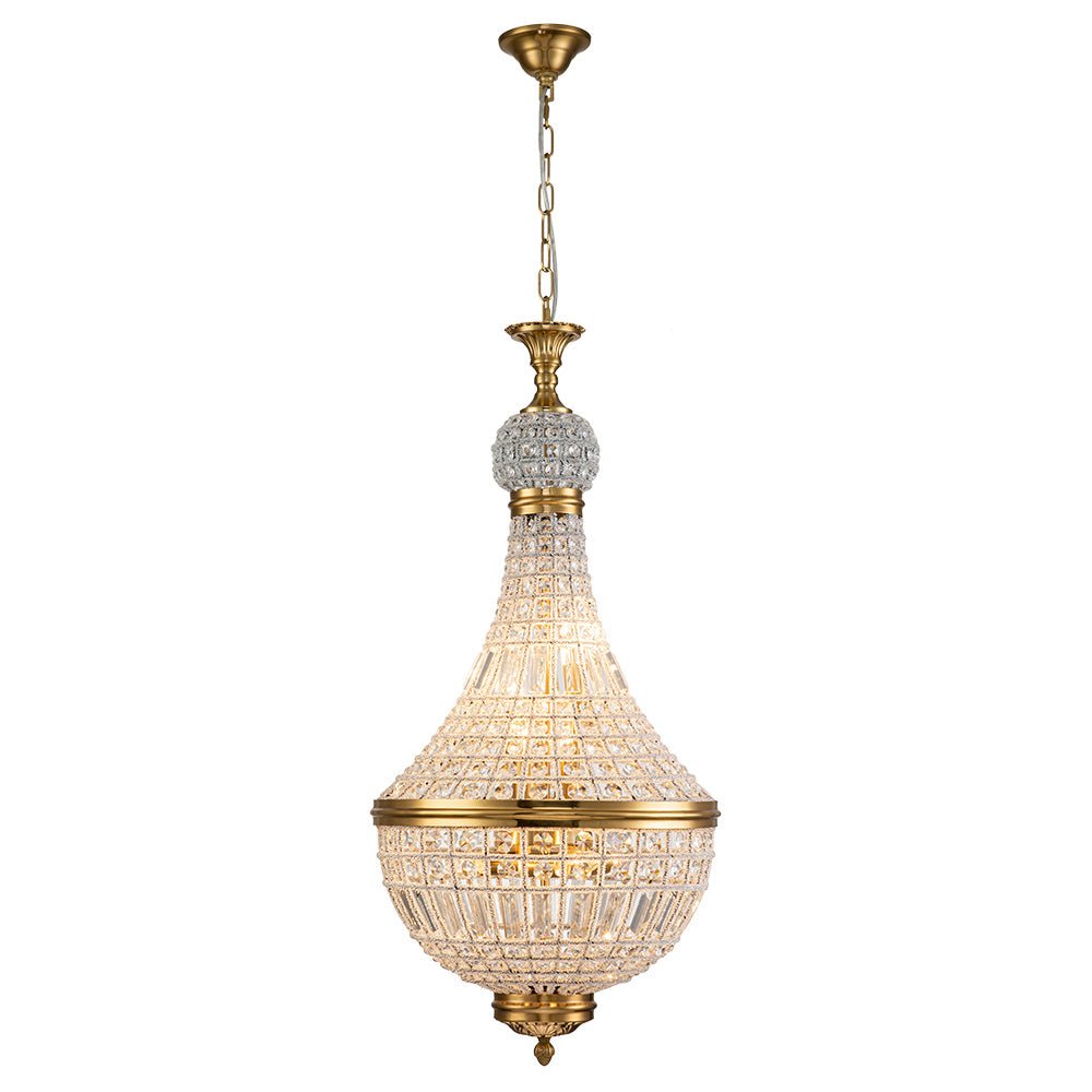 Upea ranskalainen maalaistyyli korostaa tätä upeaa kristallikruunua. Tässä ylellisessä empire-kattokruunussa on klassinen metallinen empire-runko, joka on viimeistelty antiikkimessingillä ja peitetty rikkaasti minikirkkailla helmillä. Fasetoidut lasikiteet täyttävät tämän valaistuksen ilmavan siluetin ja lisäävät kirkkautta valaistuna. Tämä vintage ranskalainen Crystal Empire kattokruunu esittelee vintage glam charmia ja ylellisen tyylikkään tavan korostaa ruokasali, olohuone, makuuhuone, eteinen tai aula.Tiedot
