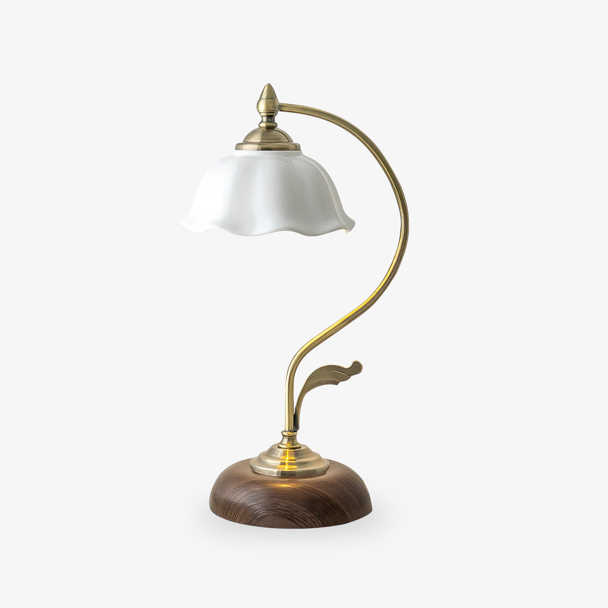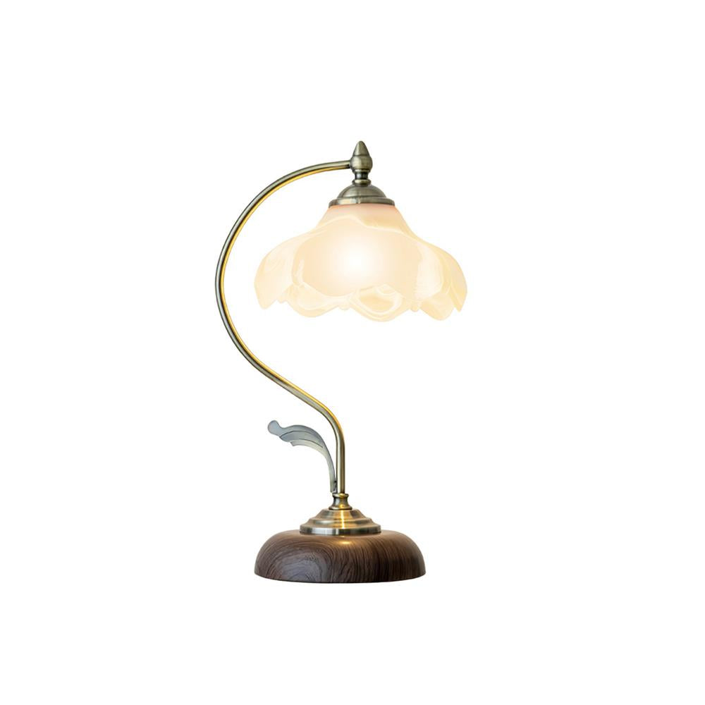 Tämä vintage-pöytävalaisin tuo tyylikkään ilmeen mihin tahansa huoneeseen. Valkoinen keraaminen kukkavarjostin ohjaa valoa erittäin tarkasti, joten se sopii erinomaisesti lukuvaloksi, yöpöytävalaisimeksi tai opiskeluvalaisimeksi. Se on valmistettu metallista ajattoman ulkonäön ja tuntuman vuoksi, ja se tarjoaa täydellisen valonlähteen mille tahansa työpöydälle tai yöpöydälle.