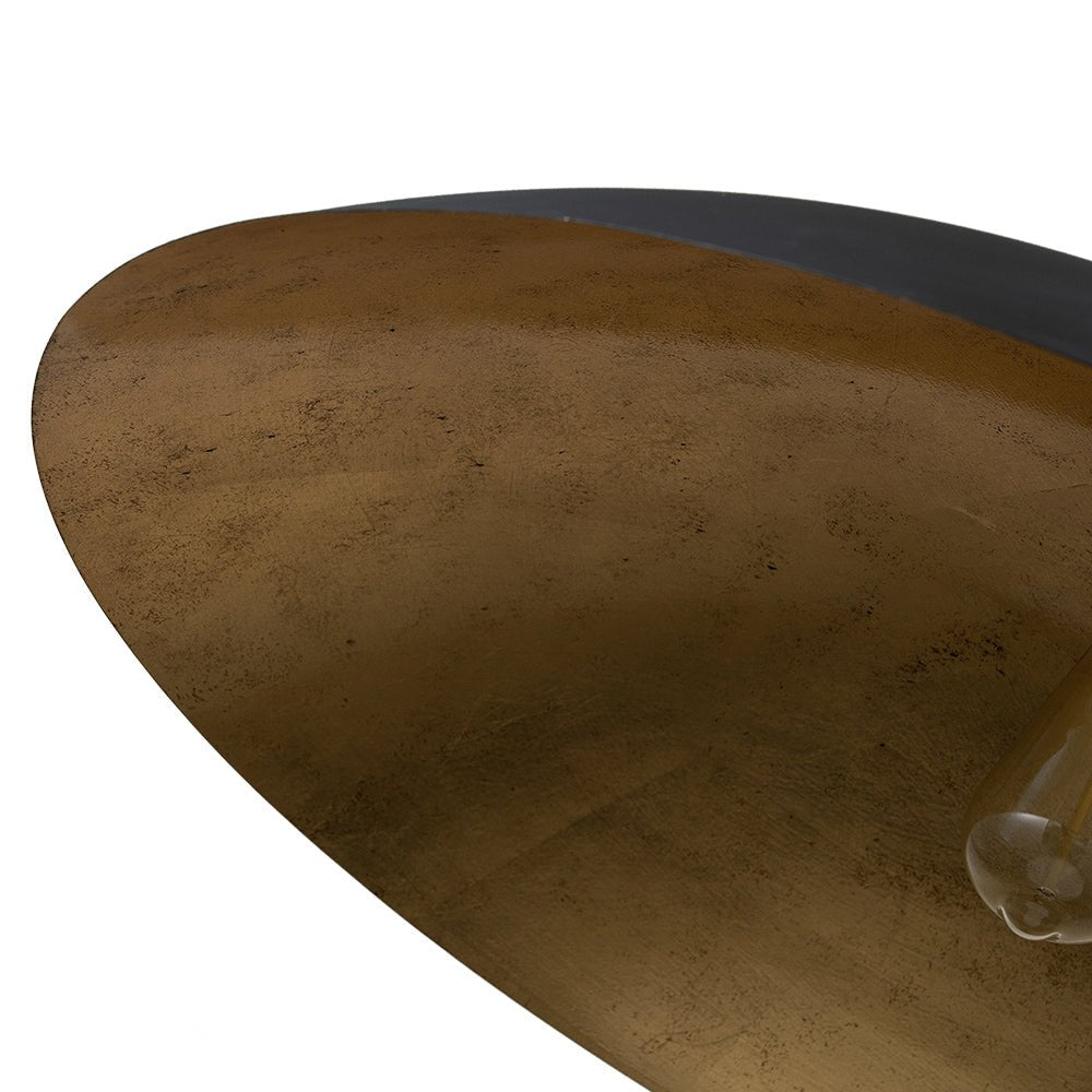 Sisällytä ajattoman hienostunut vintage-estetiikka asuintilasi minimalistisella metalliriippuvalaisimellamme. Tyylikäs ja leveä litistetyn kupolin muotoinen riipus saa inspiraationsa klassisesta lautasesta, joka näyttää ylisuuria ulkoasua ja pirteää tunnelmaa. Tässä käsintehtyssä ylellisellä kultakalvolla sisustetussa kappaleessa on vaivattomasti maalaismainen viehätys ja aavistus teollisuustyylistä hiekkamustaa ulkopinnassa. Yhteensopiva yhden E26-pohjaisen polttimon kanssa (ei sisälly), se tarjoaa tehokkaan työvalaistuksen alaspäin ja sopii erinomaisesti ruokapöydän, keittiösaarekkeen, olohuoneen tai eteisen valaisemiseen.Tiedot