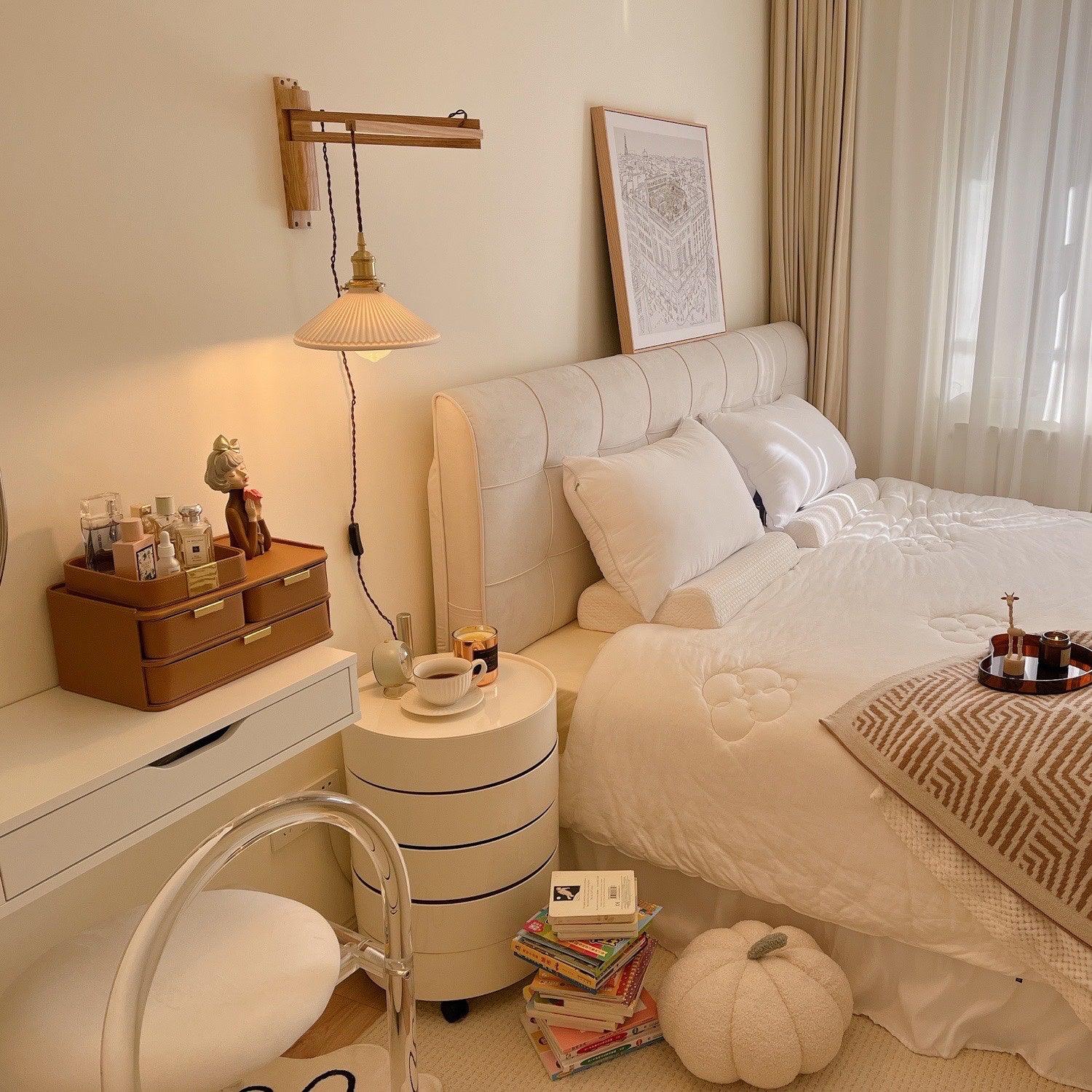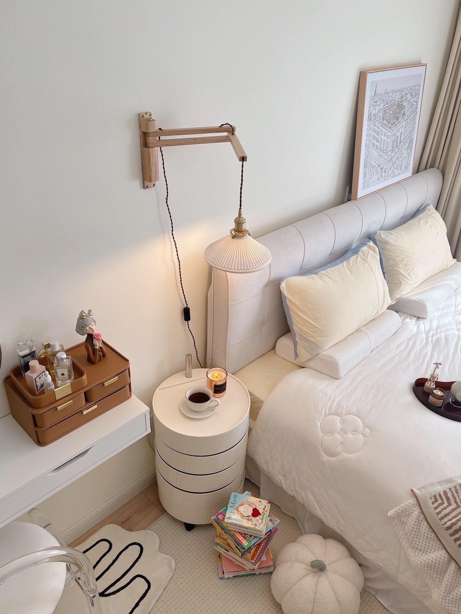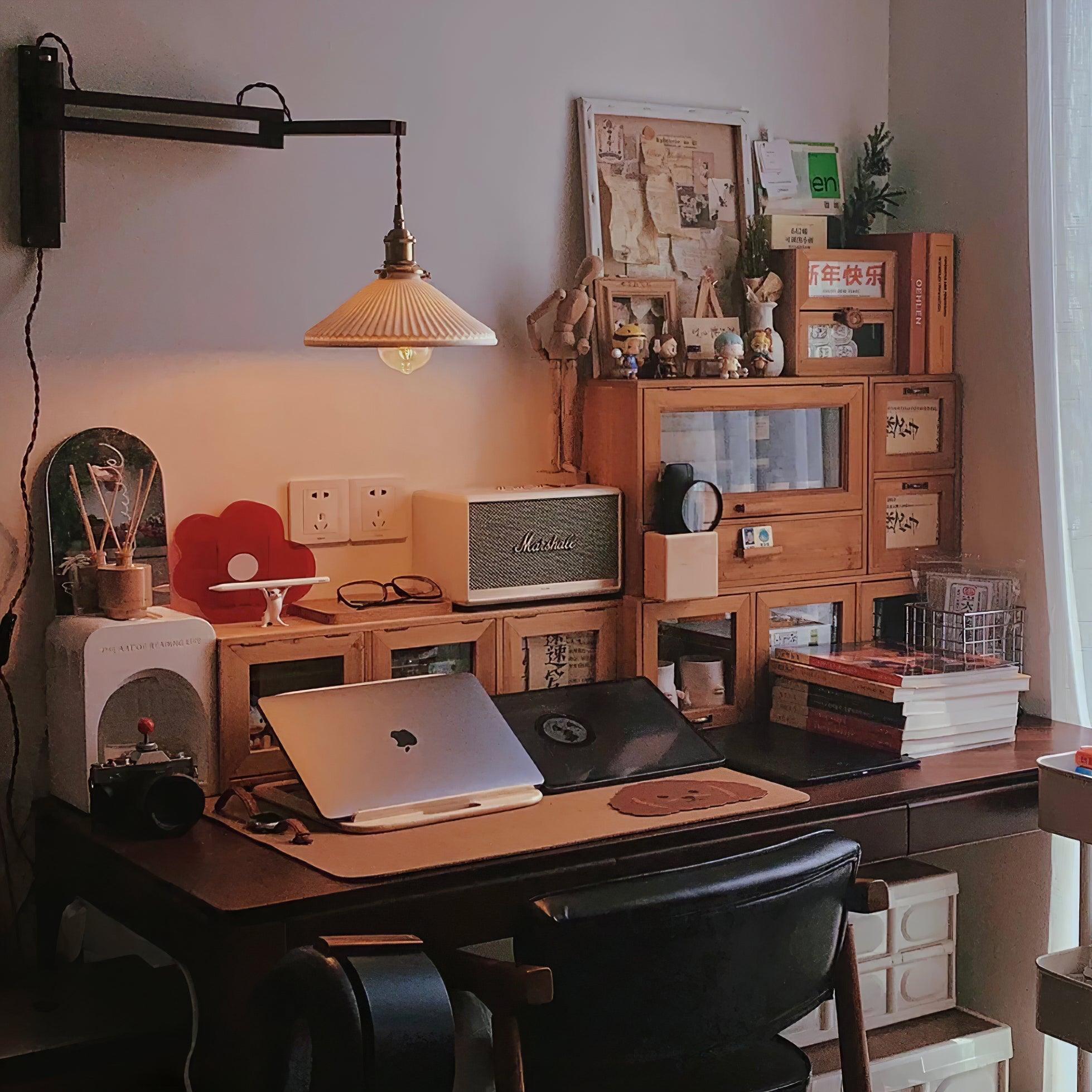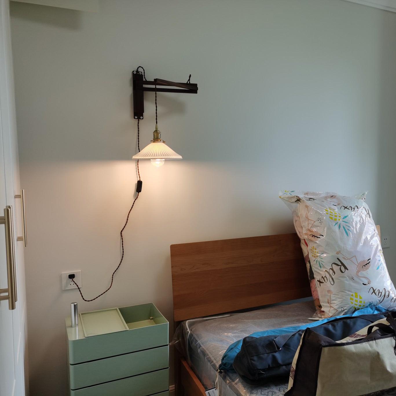 Suunnittelijan sisäänvedettävä seinävalaisin, joka koostuu metallin, puun ja keraamisen yhdistelmästä. Virroittimella rakennettu se mahdollistaa erittäin monipuolisen valaisimen, joka antaa syvyyttä ja samalla pienemmät ja kompaktit mitat. Lampunvarjostin on muodoltaan pyöreä ja rikastettu pinnalla, jossa on säännölliset ja tarkat taitokset optimaalisen valon hajauttamisen varmistamiseksi.
