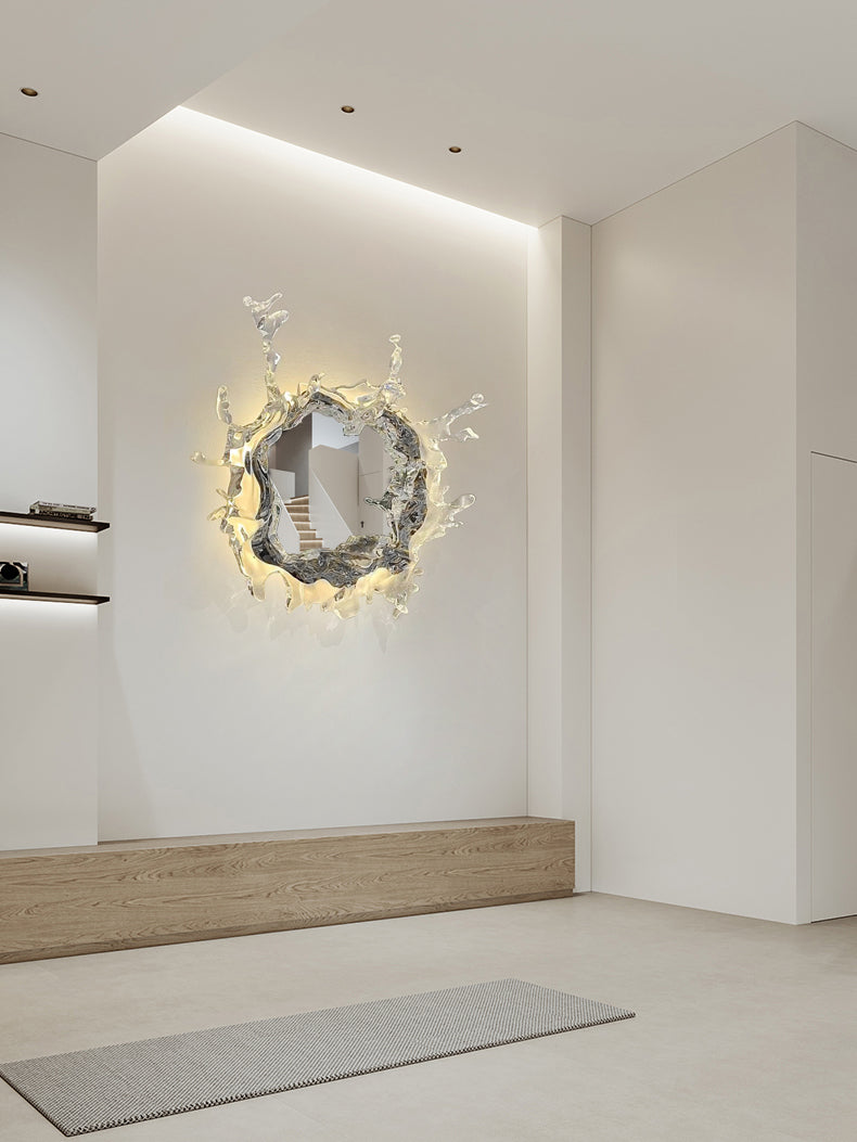 Water Drop Mirror -seinälamppu on kaunis tapa lisätä modernia ilmettä mihin tahansa huoneeseen. Tämä seinävalaisin on valmistettu ainutlaatuisista lasipeiliyksityiskohdista, jotka luovat upean ilmeen, ja se on suunniteltu huijaamaan silmää ja luomaan illuusion korkealta putoavista vesipisaroista. Tyylikkäällä ja modernilla muotoilullaan tämä valaisin on varmasti katseenvangitsija lisä jokaiseen tilaan.
