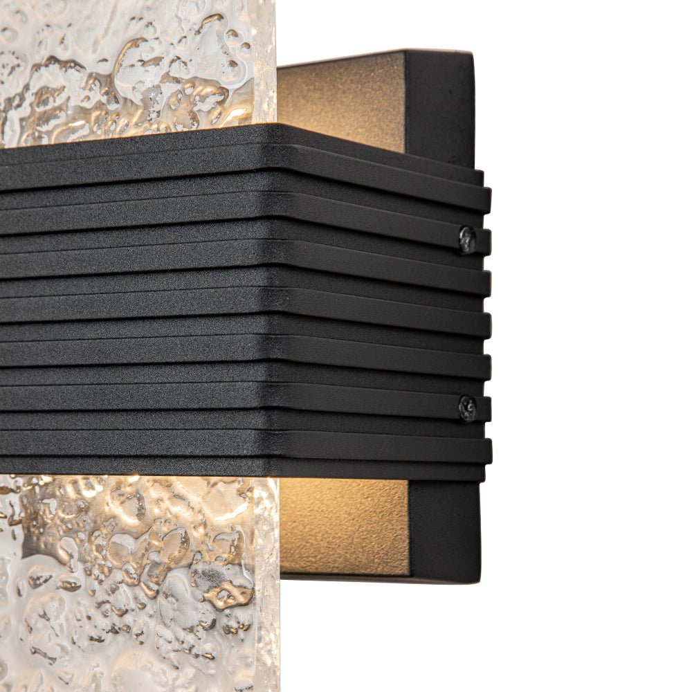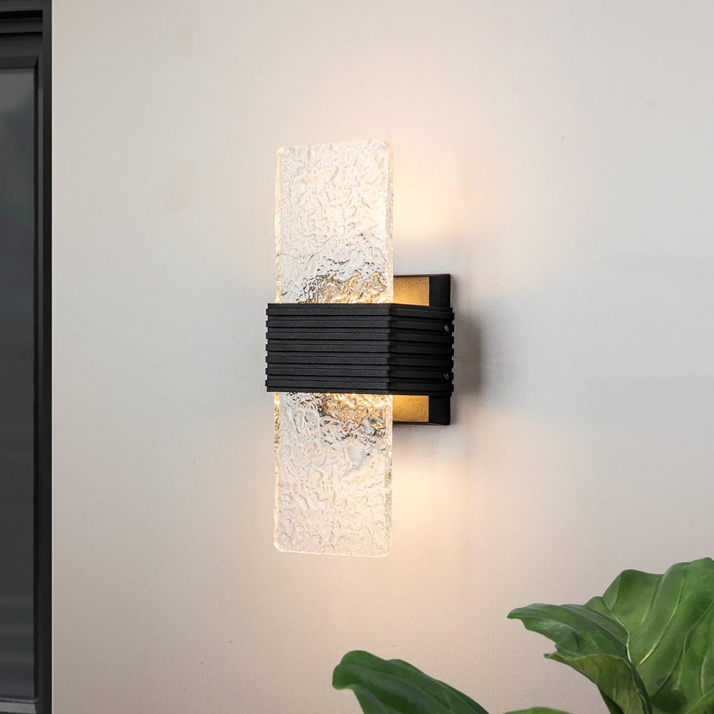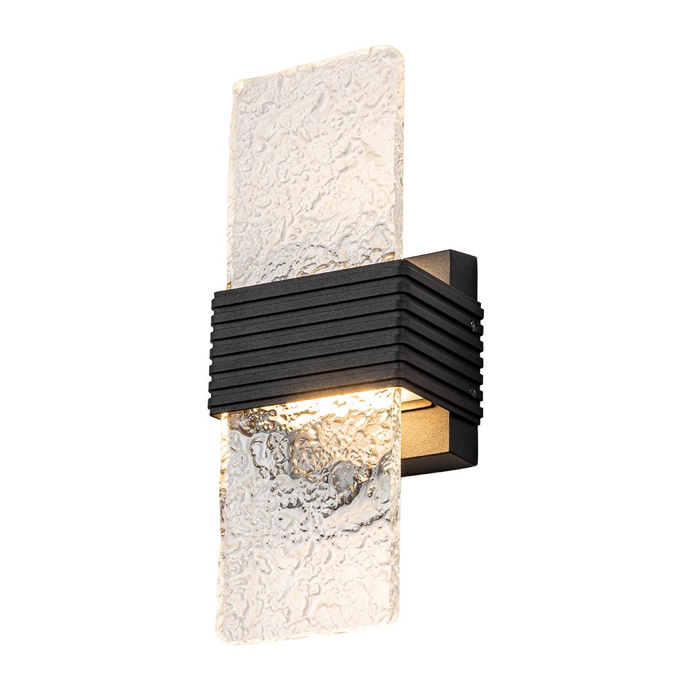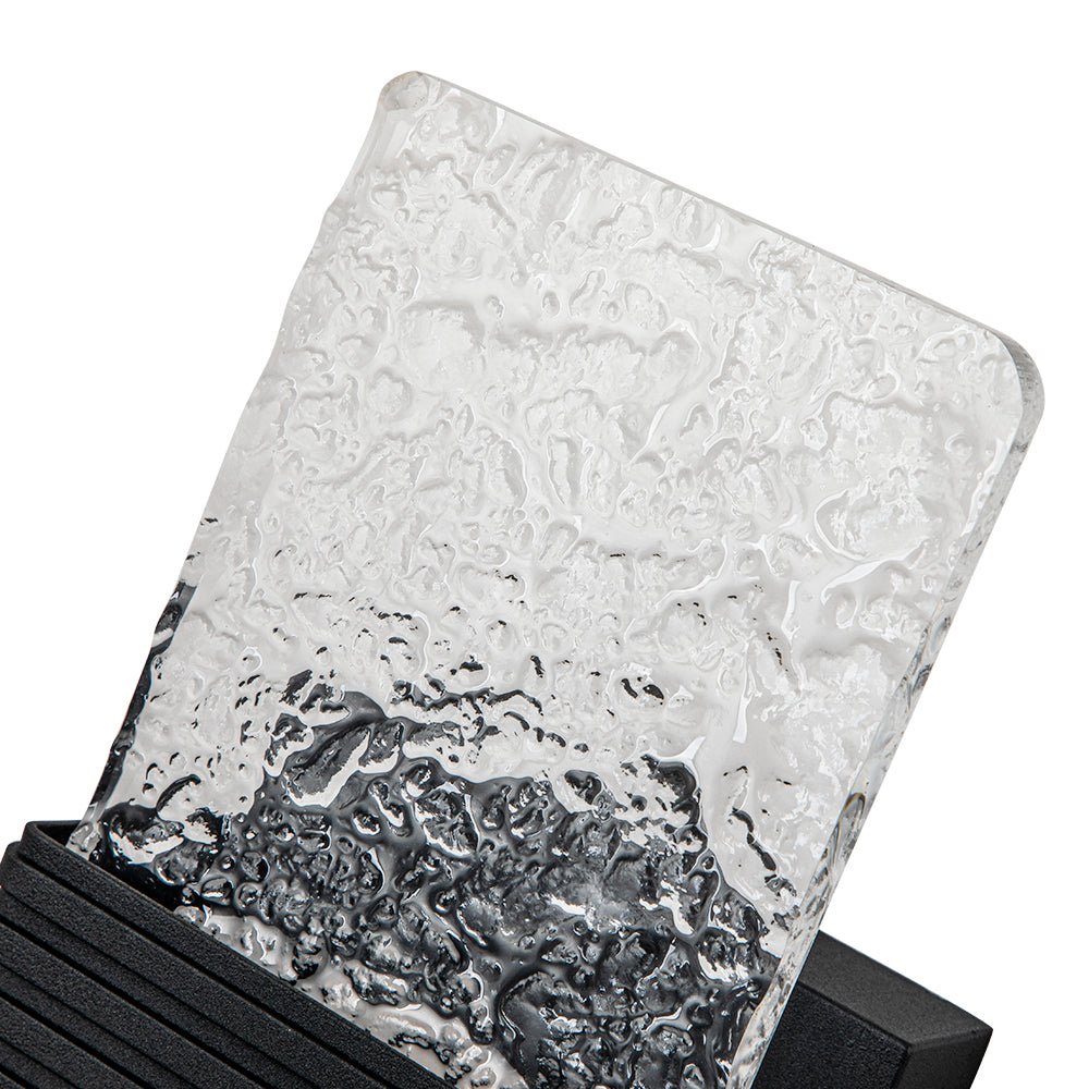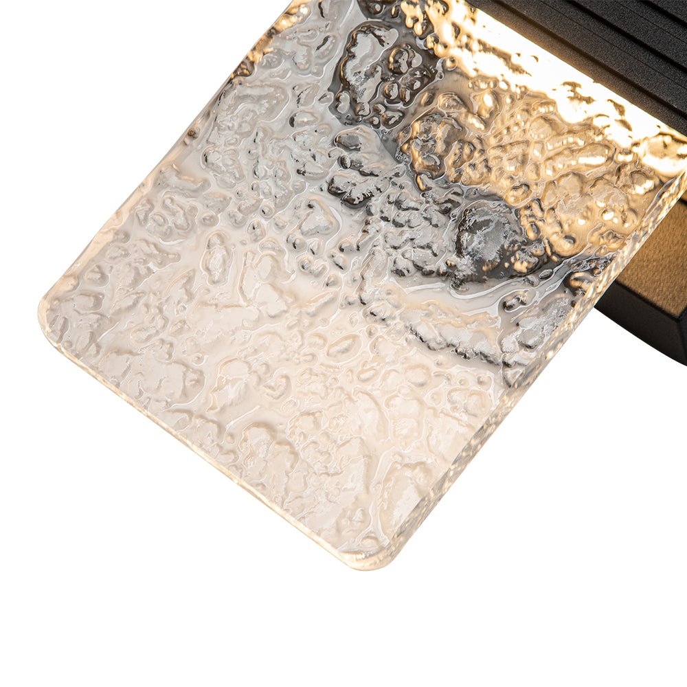 Pala suorakaiteen muotoista vesikuvioitua akryylisävyä antaa silkkaa, kiteistä kauneutta ja upeaa eleganssia tälle minimalistiselle mustalle ulkoseinävalaisimelle. Tämä moderni ulkoseinävalaisin on varustettu 10 W LEDillä, ja se levittää hohtavaa hehkua, lasita takaseinää ja tulee eteenpäin kuvioidun varjostimen läpi luoden ihastuttavan tunnelman. Tämä hillitty mutta huippuluokan kuvioitu LED-ulkoseinävalaisin on täydellinen valaisemaan kuistia, sisäänkäyntiä, autotallia tai kylpyhuonetta.Tiedot