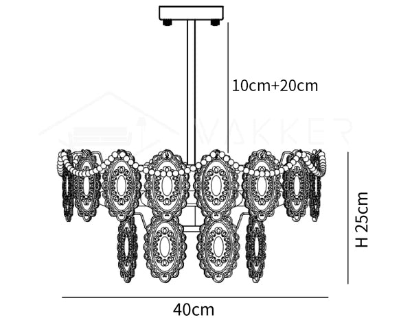 Koko: Halkaisija 40 cm x K 25 cm / Φ 15,7" x K 9,8" / E14*4