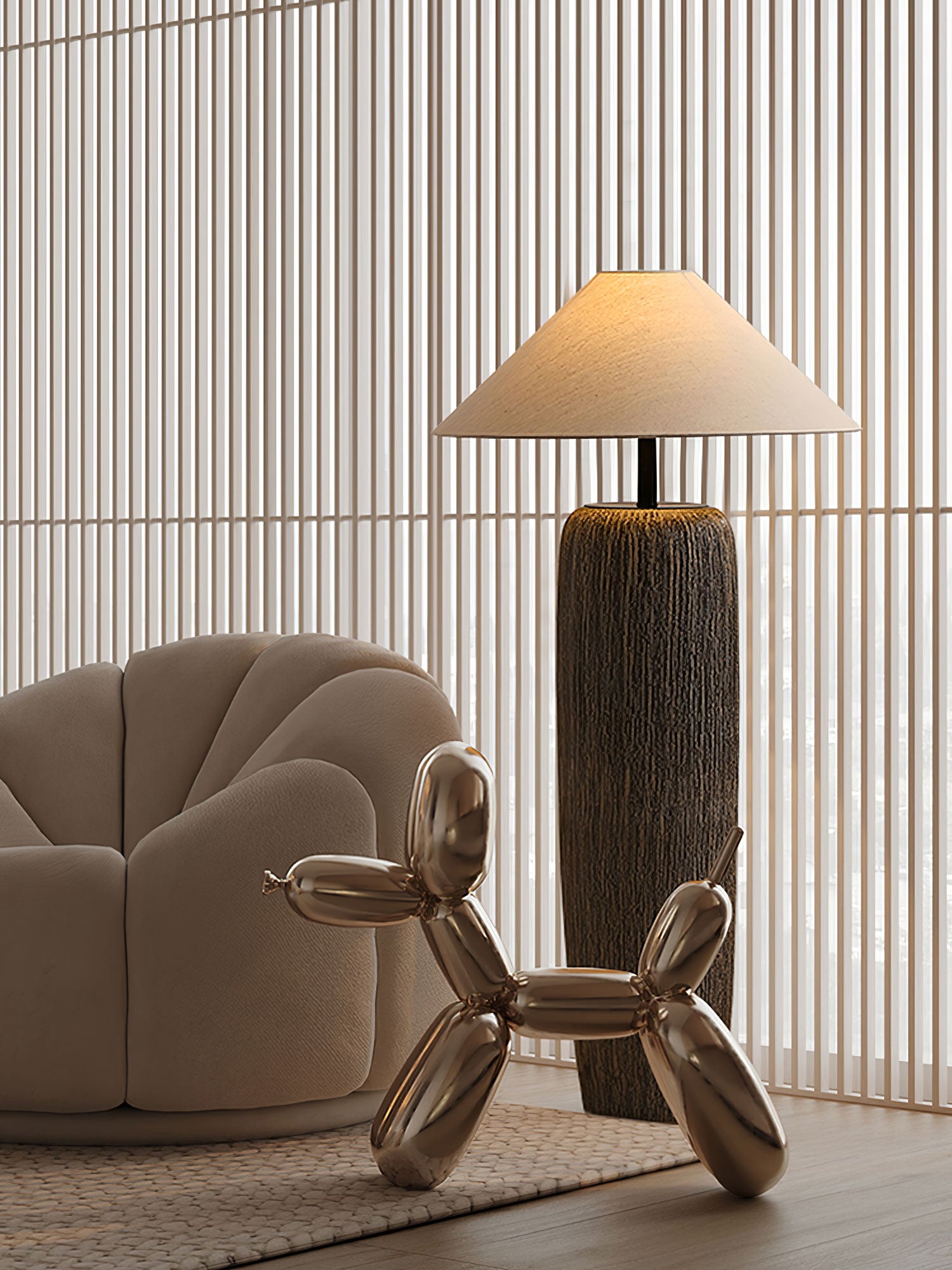 Juhlista luonnon kauneutta haalistuneella puulattiavalaisimellamme. Tämä luonnollisesti säänkestävästä puusta valmistettu ainutlaatuinen valaisin lisää ripauksen maalaismaista viehätystä mihin tahansa huoneeseen. Orgaaniset raidat ja ainutlaatuiset rakeiset kuviot tekevät siitä todellisen taideteoksen. Omaksu 1970-luvun kalifornialainen tyyli kotiisi.