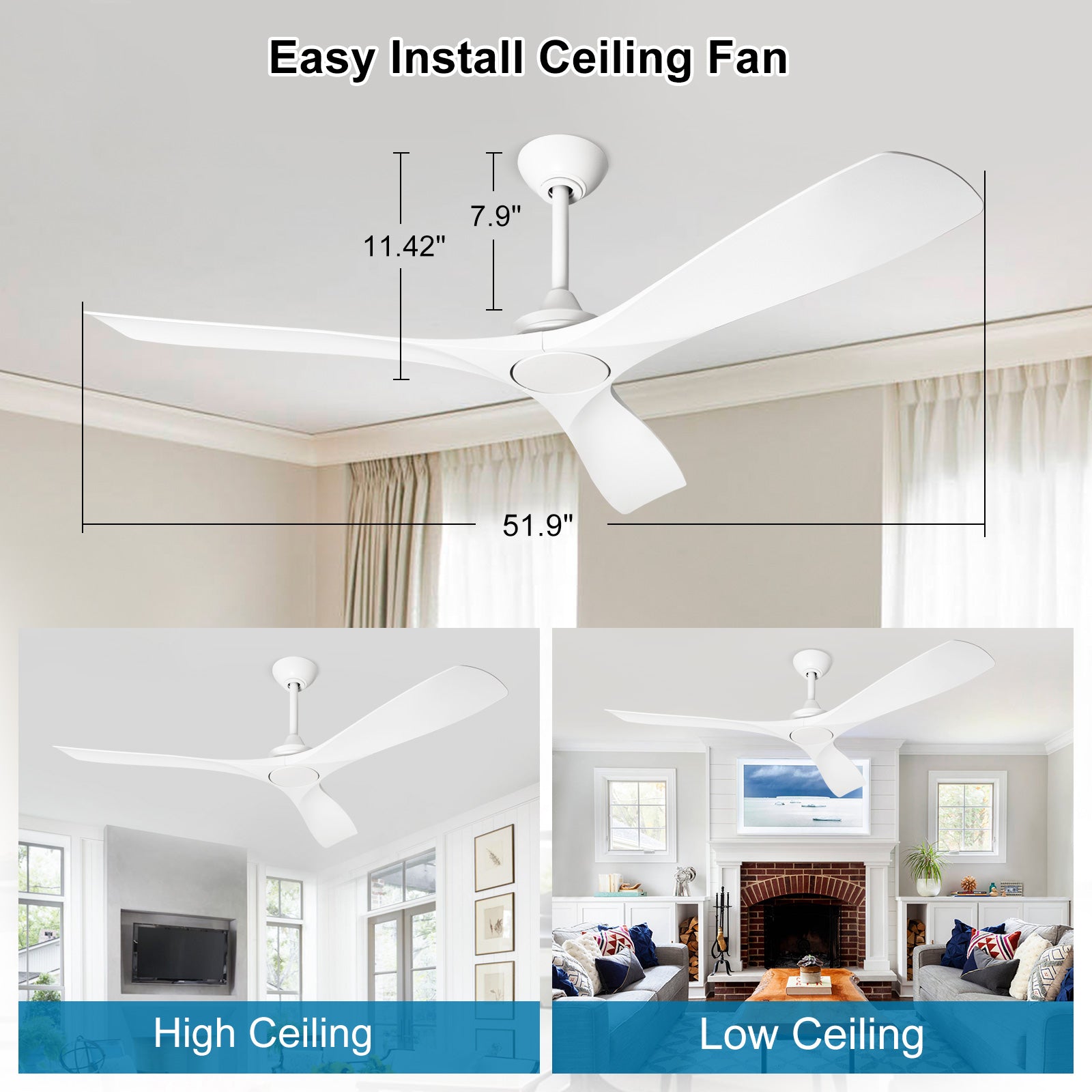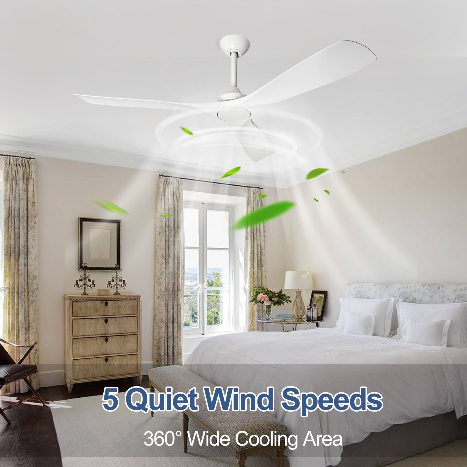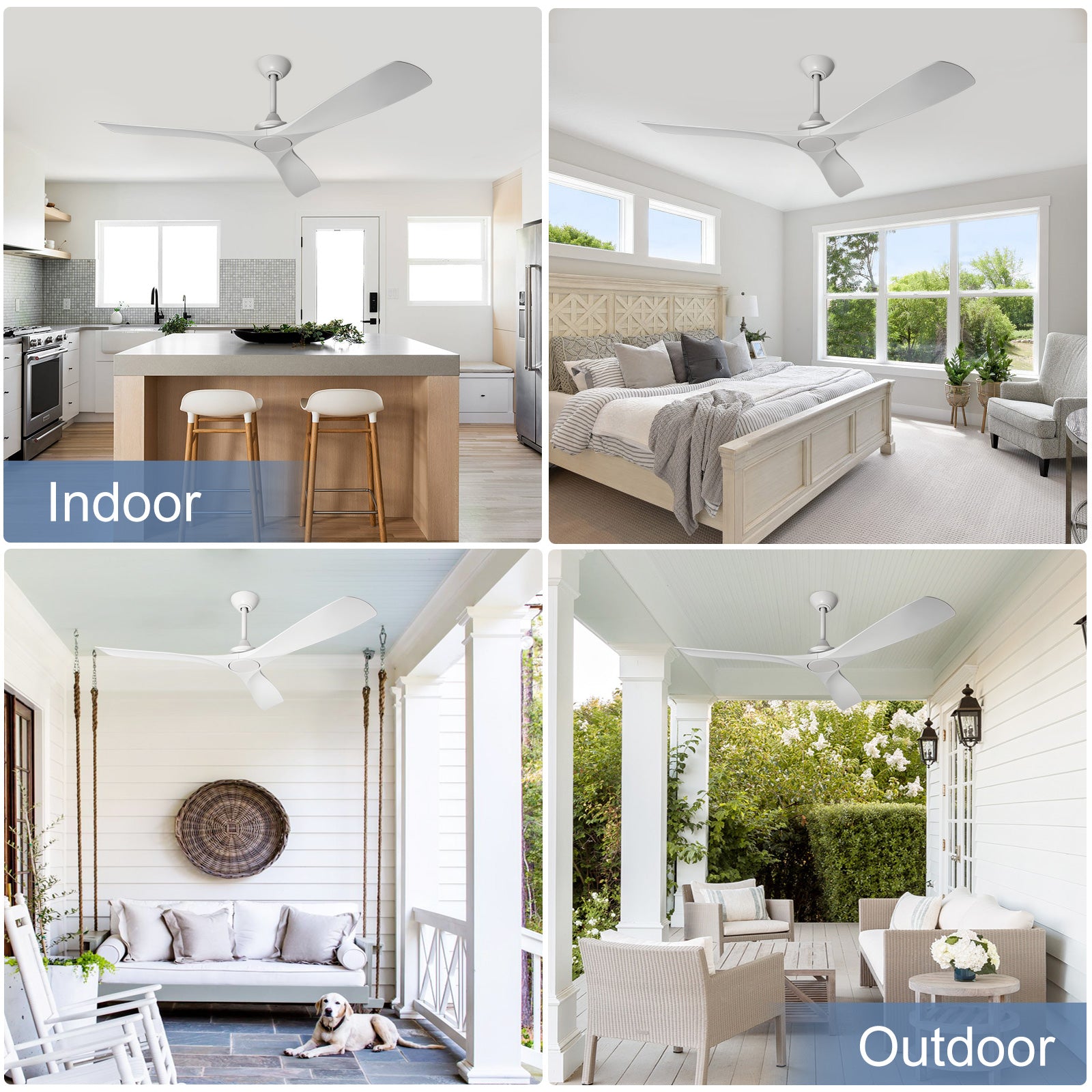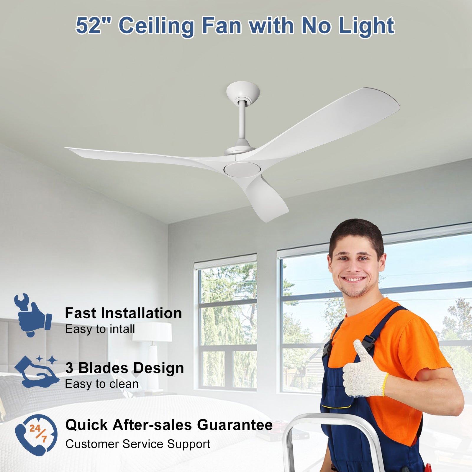 Depuleyn valkoinen moderni etäkattotuuletin ei valoa, matalaprofiiliset kattotuulettimet ilman valoa, 52 tuuman äänetön käännettävä tasavirtamoottori keittiöön/patiolle/maatalolle ja katettuun ulkokäy