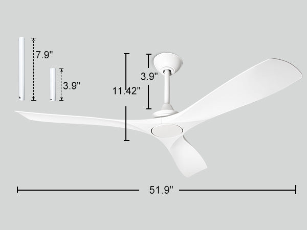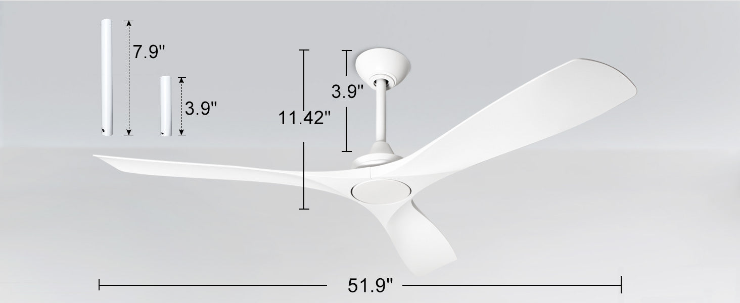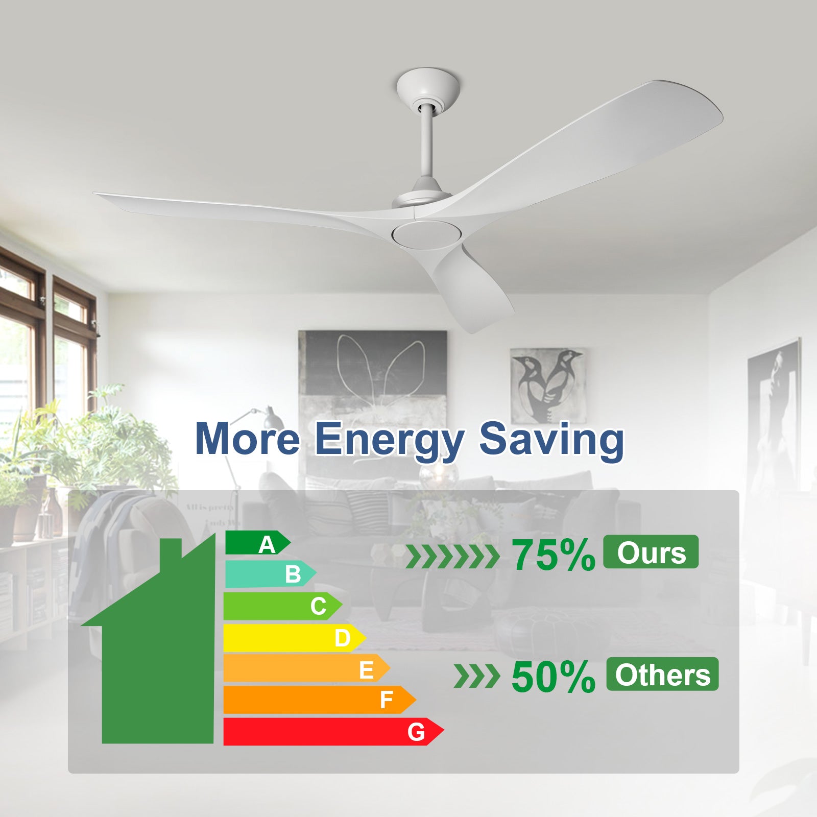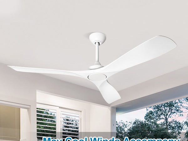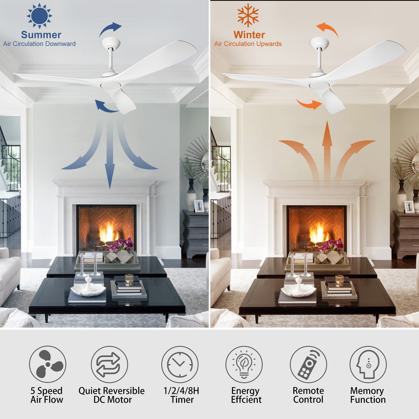 Depuleyn valkoinen moderni etäkattotuuletin ei valoa, matalaprofiiliset kattotuulettimet ilman valoa, 52 tuuman äänetön käännettävä tasavirtamoottori keittiöön/patiolle/maatalolle ja katettuun ulkokäy