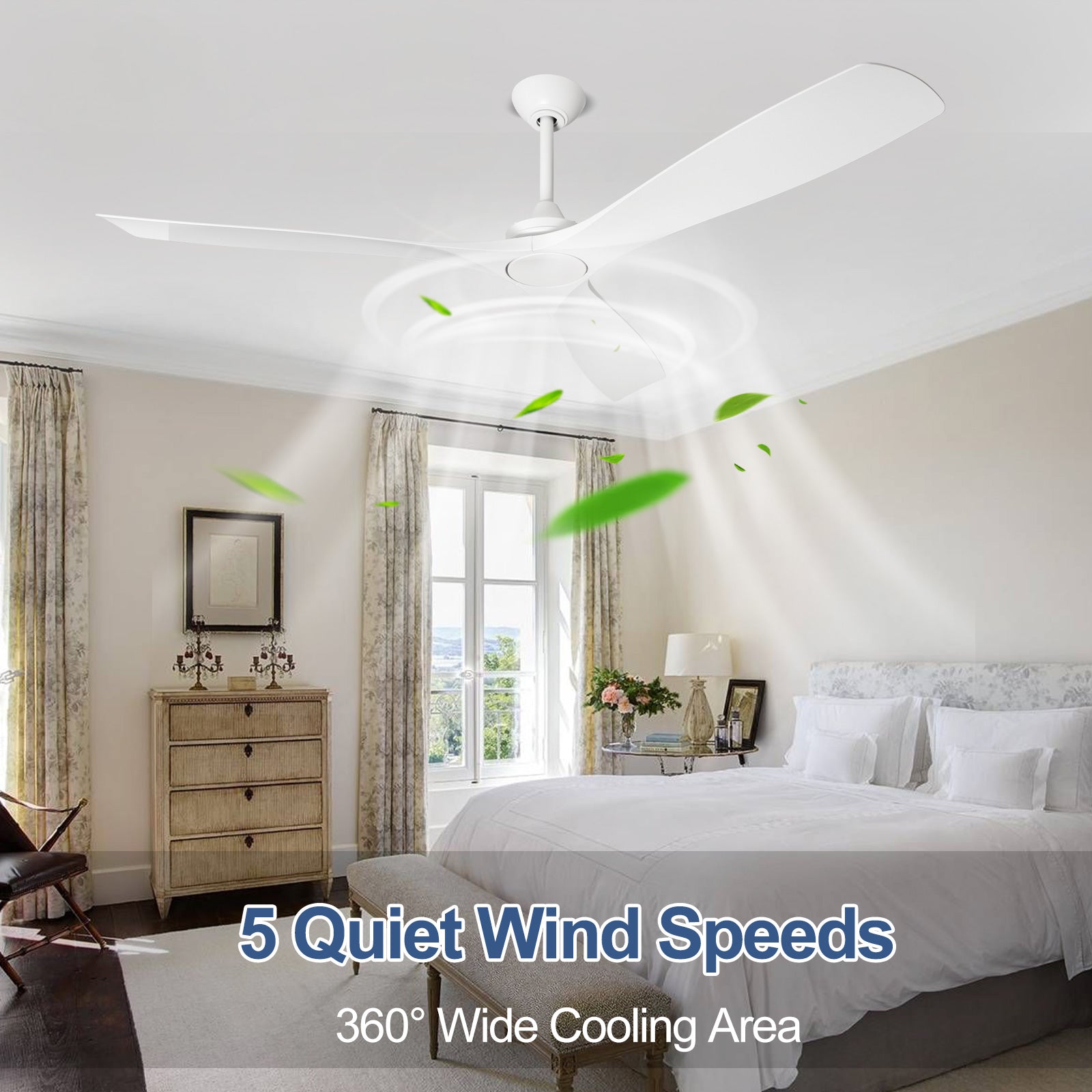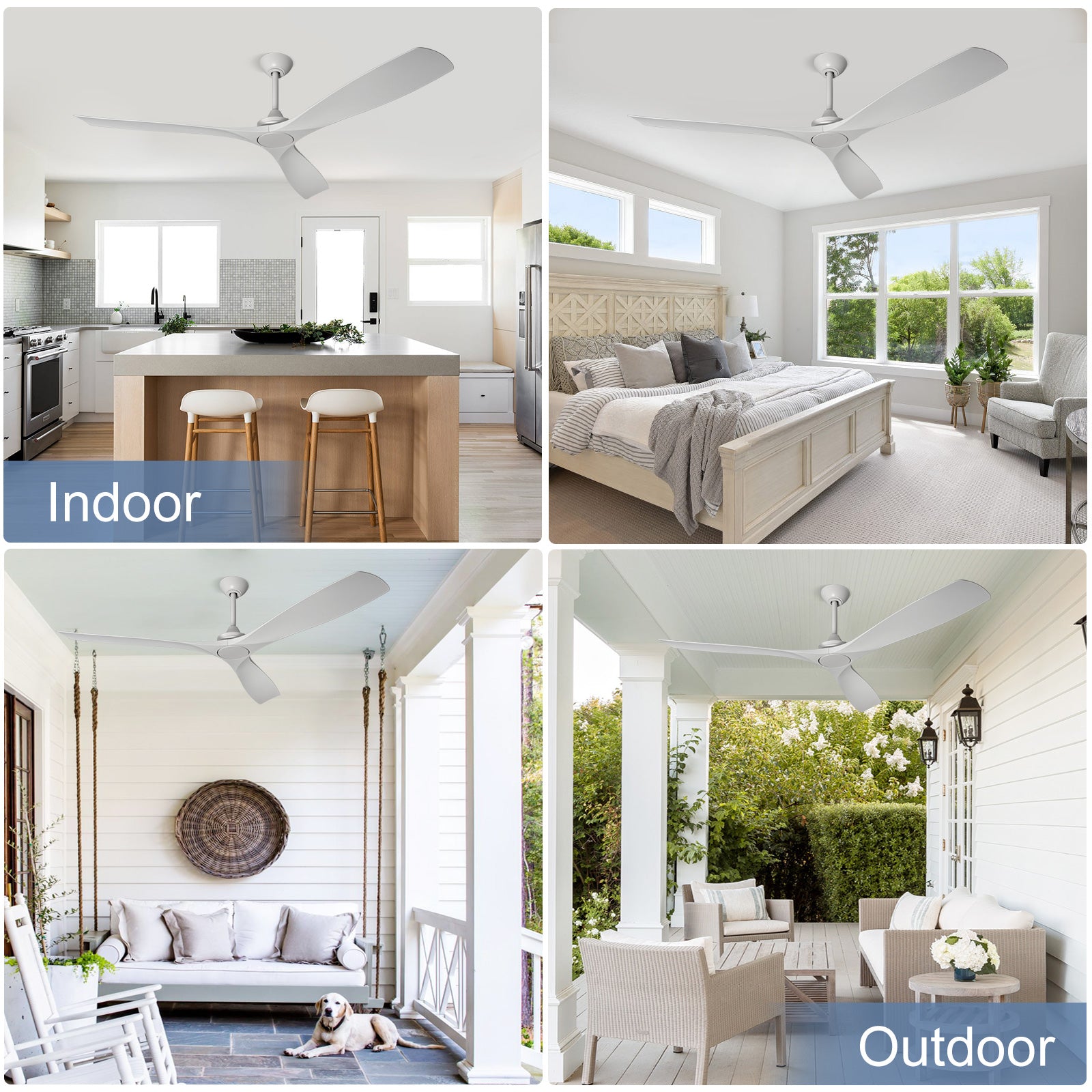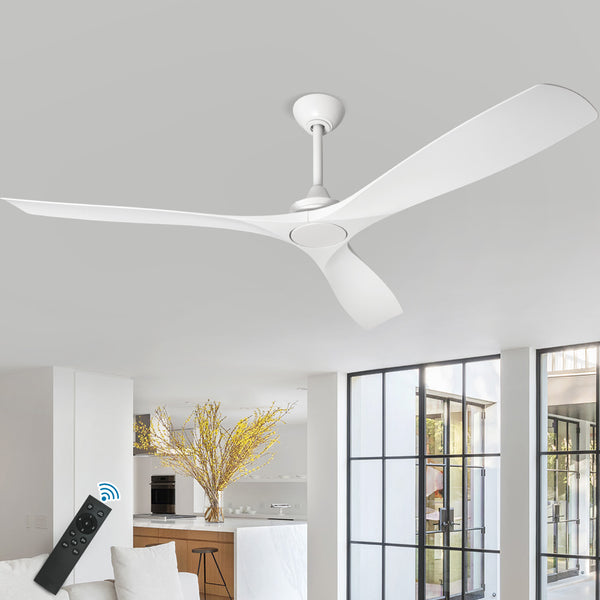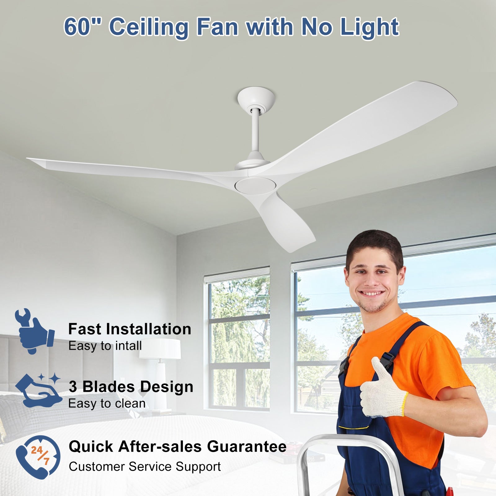 Depuley 60" valkoinen uppoasennettava etäkattotuuletin Ei valoa, matalaprofiiliset modernit kattotuulettimet ilman valoa, äänetön käännettävä tasavirtamoottori patiolle/olohuoneeseen/työhuoneeseen/huv