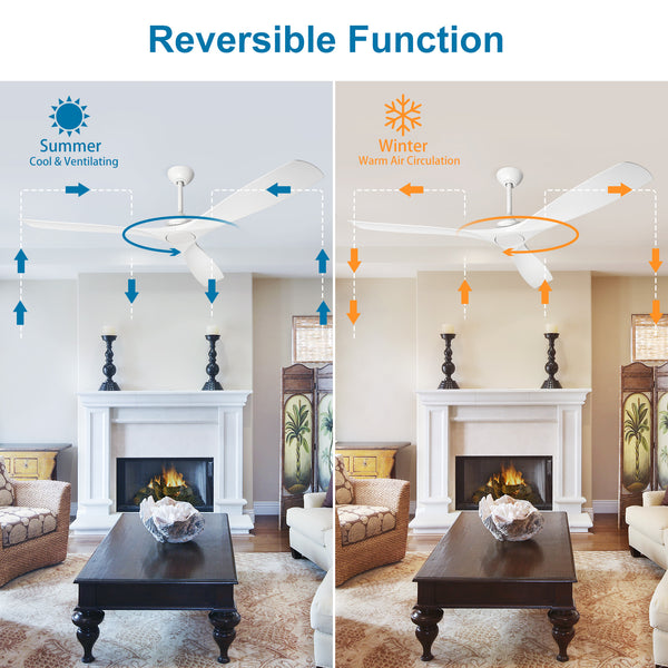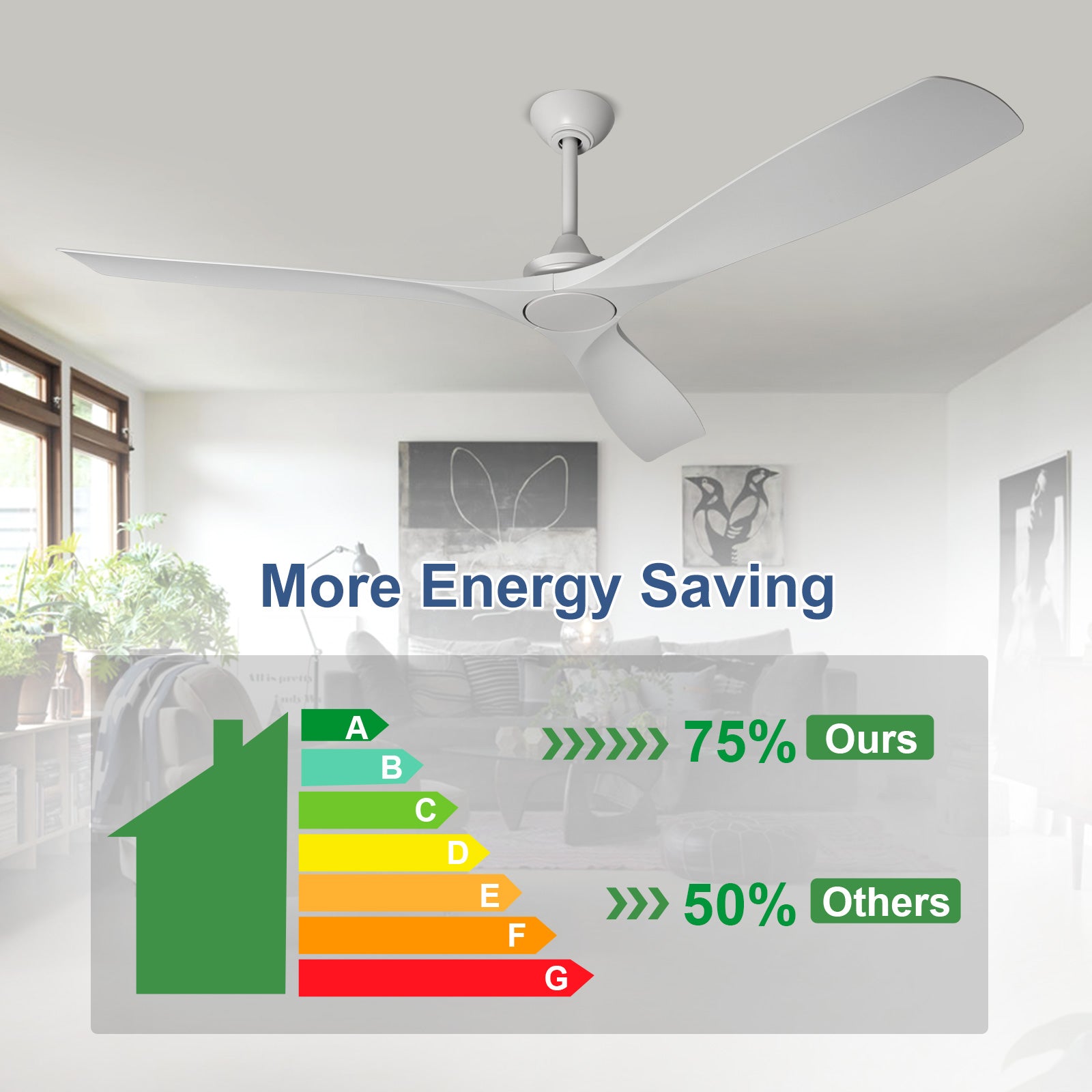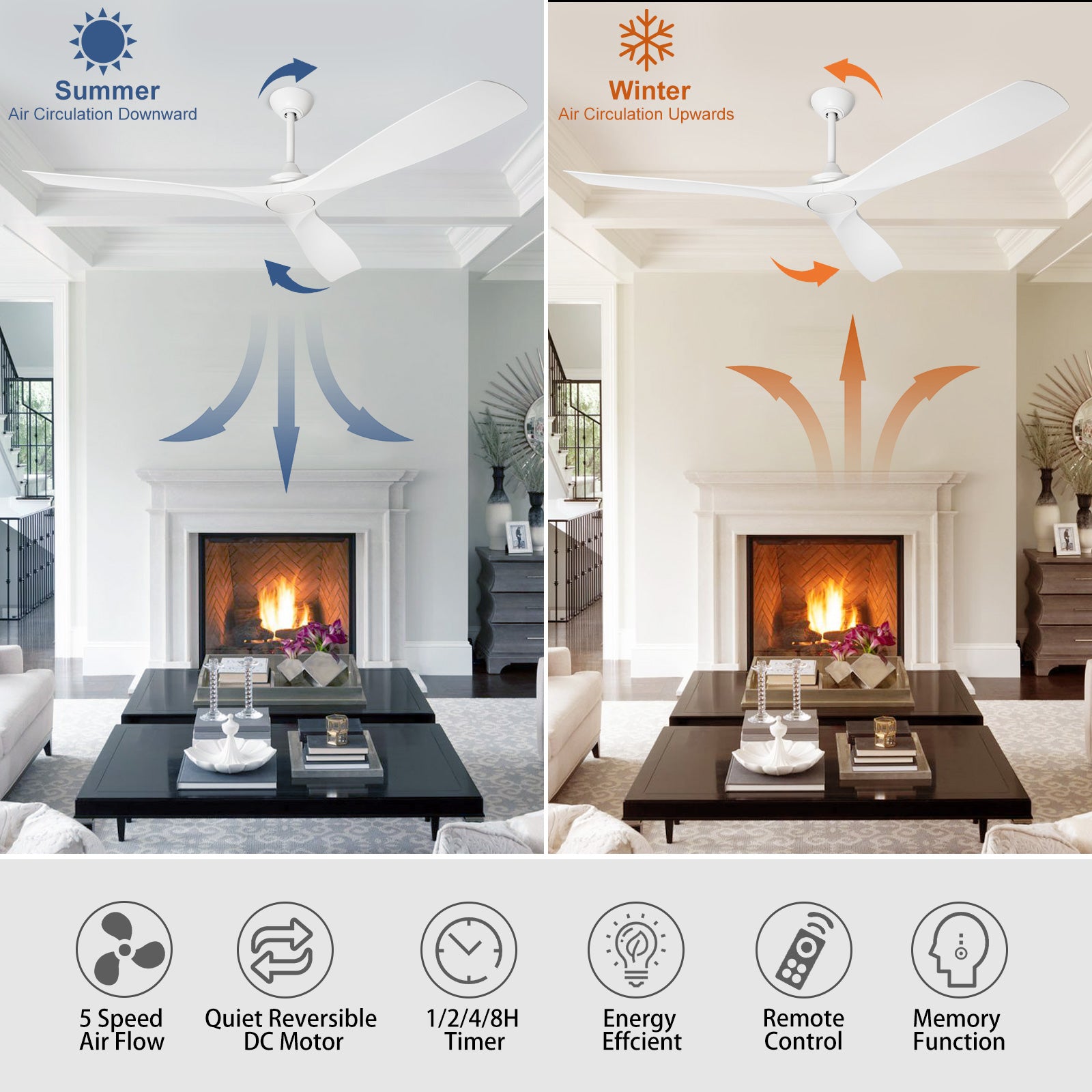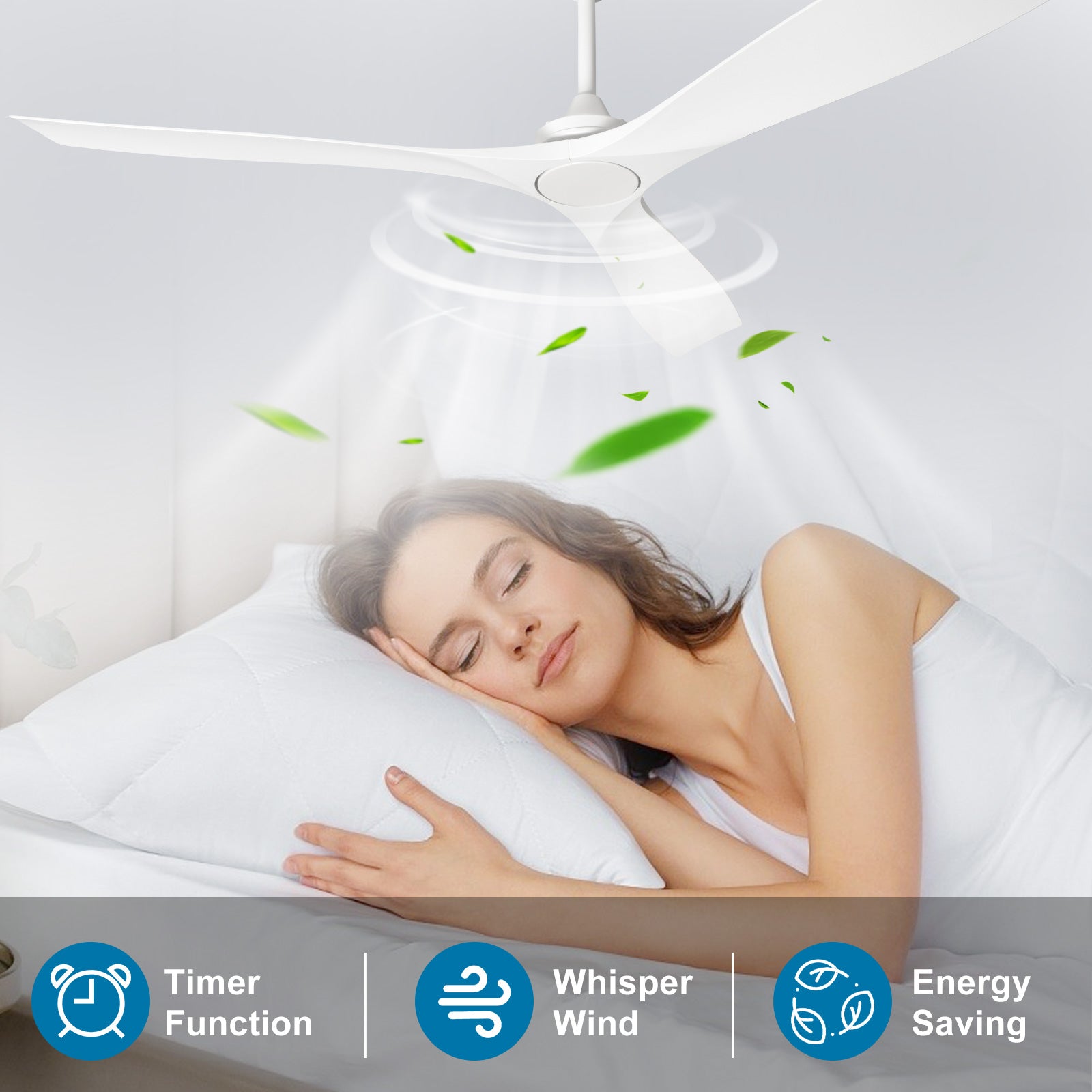 Depuley 60" valkoinen uppoasennettava etäkattotuuletin Ei valoa, matalaprofiiliset modernit kattotuulettimet ilman valoa, äänetön käännettävä tasavirtamoottori patiolle/olohuoneeseen/työhuoneeseen/huv