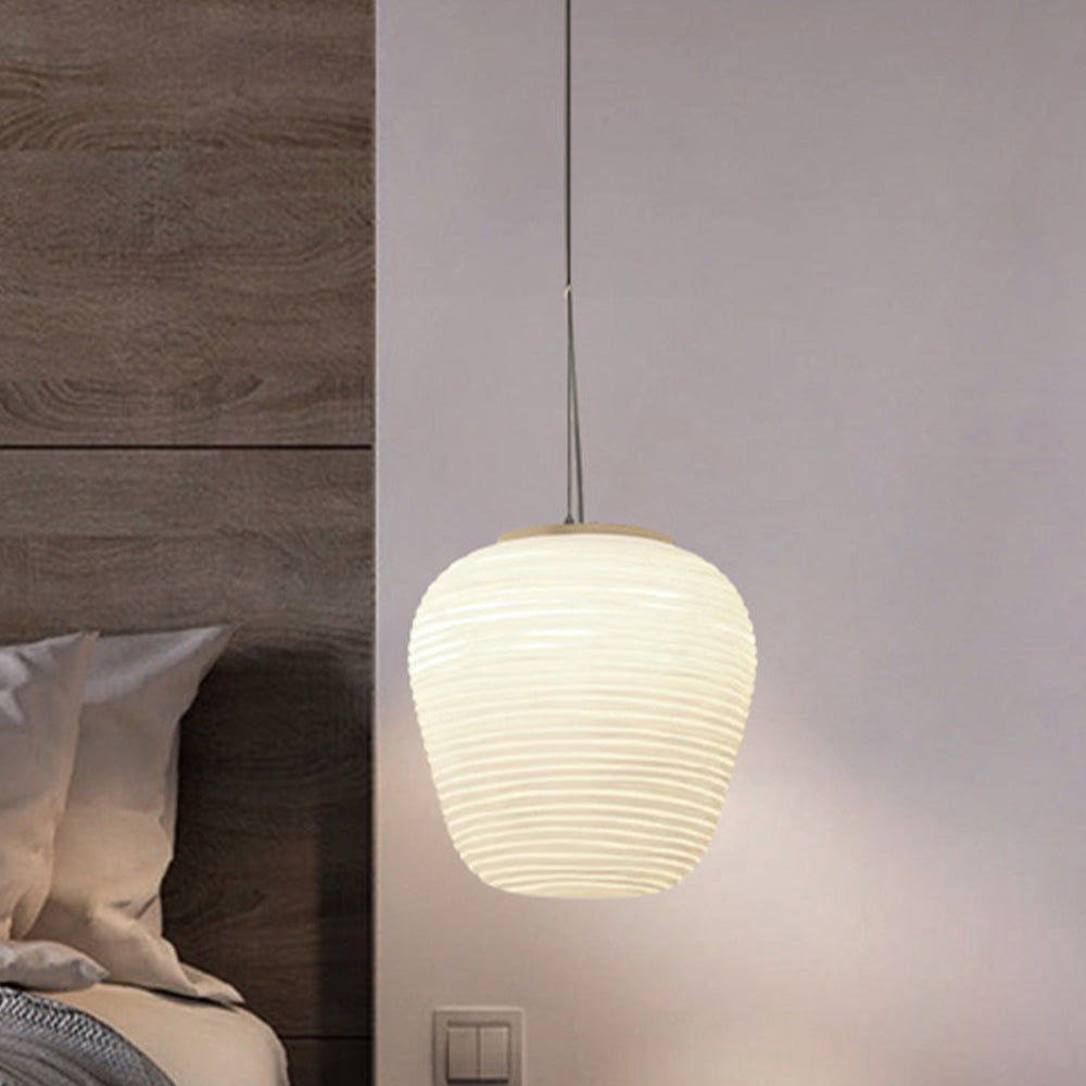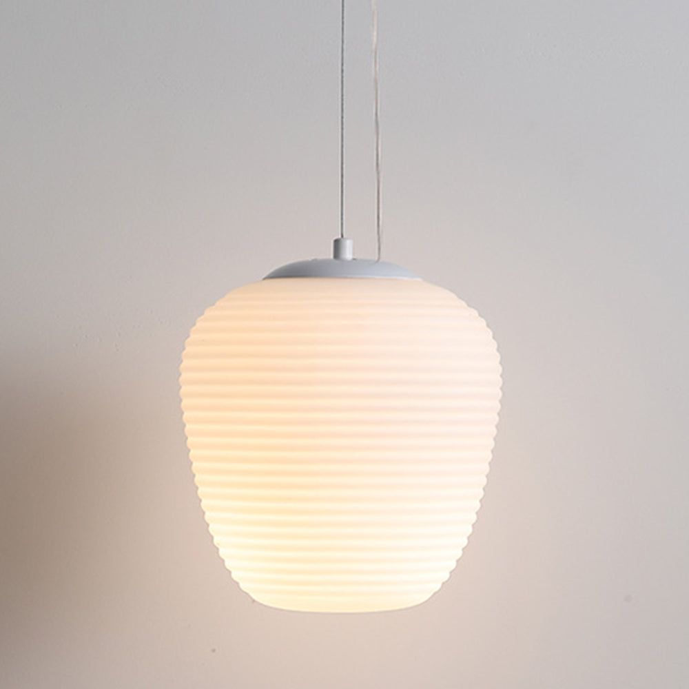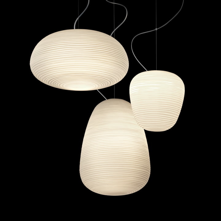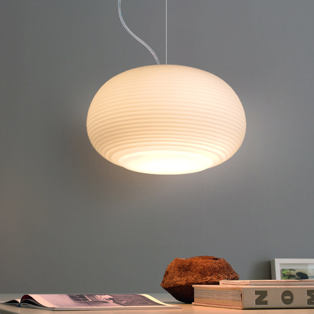 Nämä riippuvalot muistuttavat washi-paperilyhtyjä, mutta ne on valmistettu käsinpuhalletusta lasista. Saatavana erilaisissa mutta toisiaan täydentävissä muodoissa.