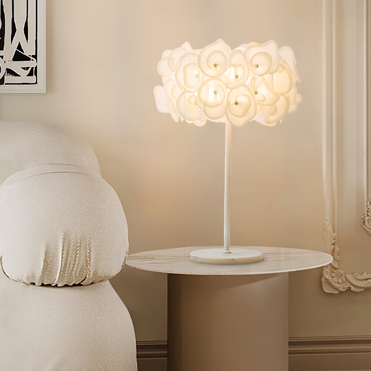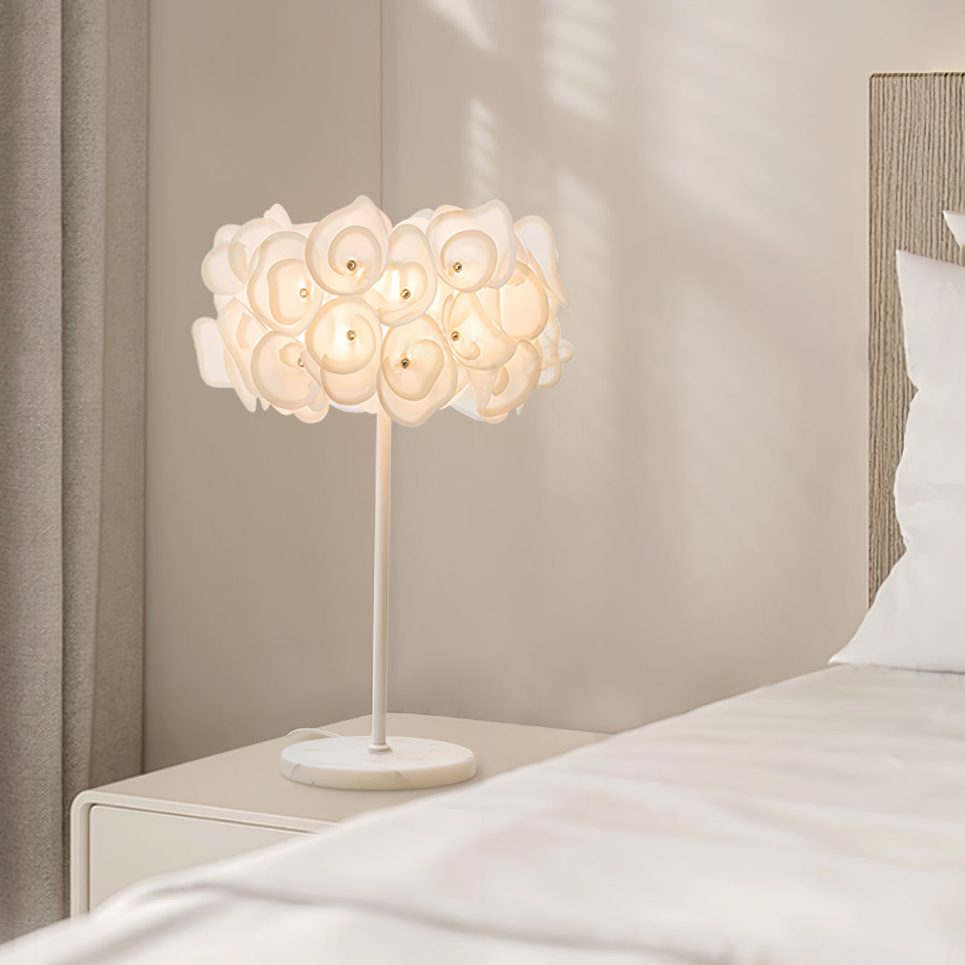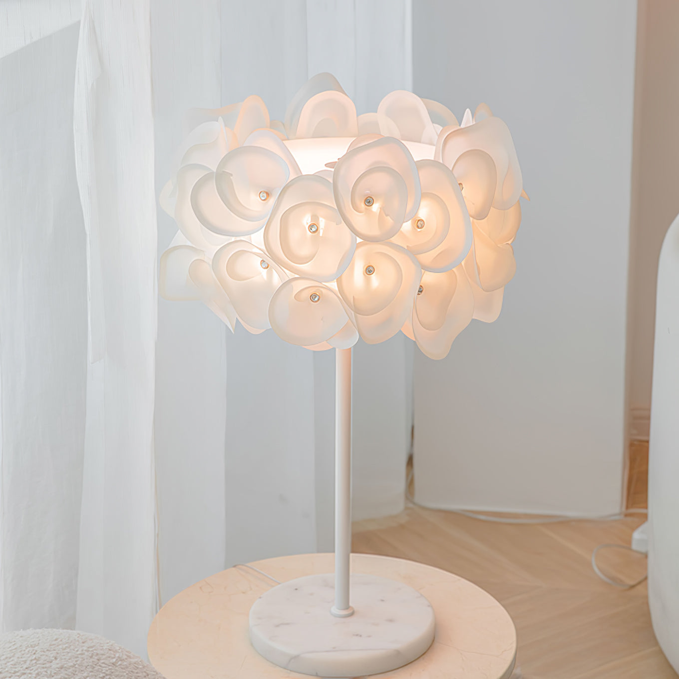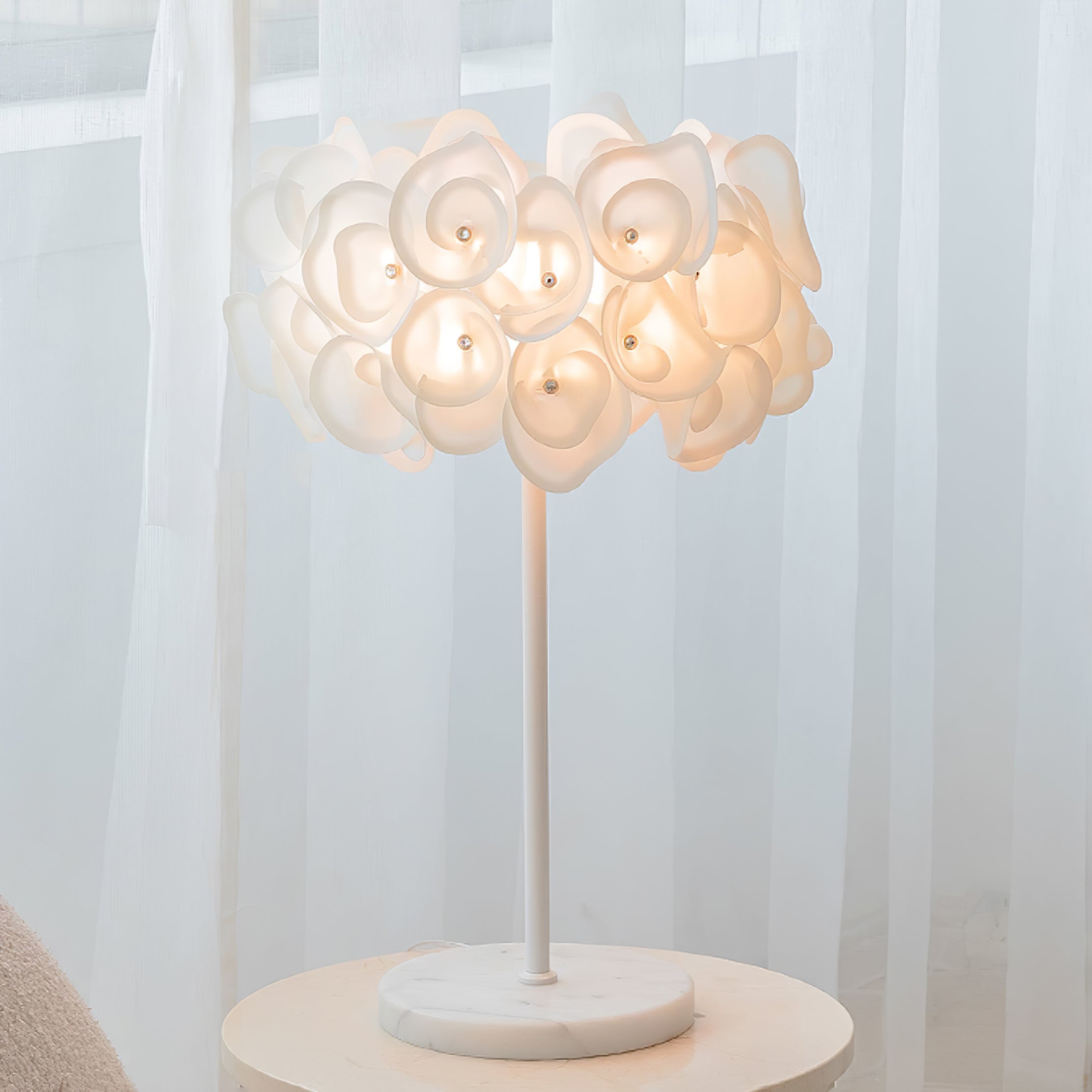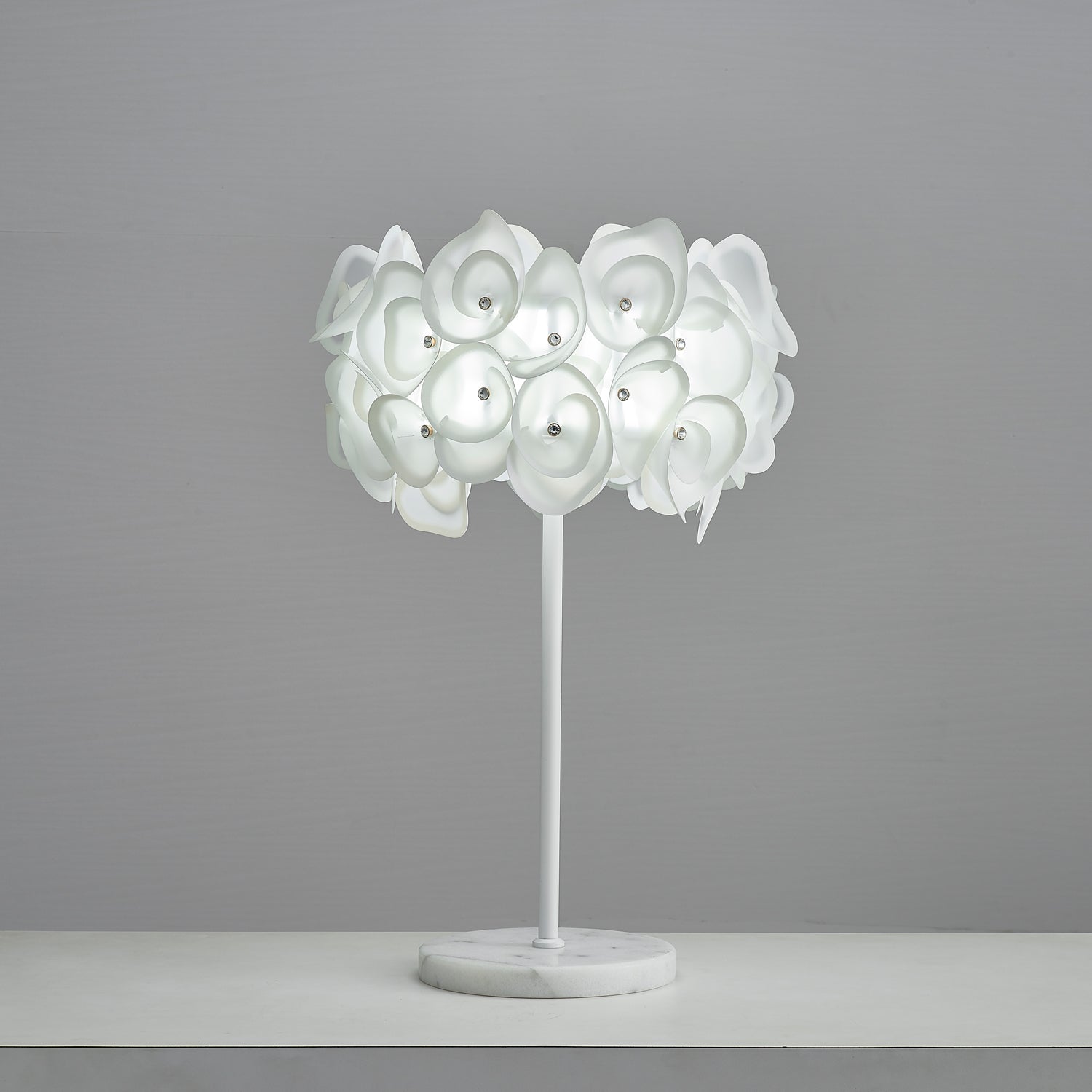 Valkoinen hydrangea-pöytälamppu on silmiinpistävä taideteos, jossa on sileät linjat, monimutkaiset siluetit ja upea ulkonäkö. Sen pilvimäinen muotoilu koostuu yksittäisistä terälehdistä, jotka on taivutettu ja leikattu käsin, mikä antaa sille jännittävän, eloisan tunnelman. Monia muotoja yhdistettynä se luo kauniin valon diffuusion kiinnittääkseen huomion ja tekee siitä keskustelun aloittajan.