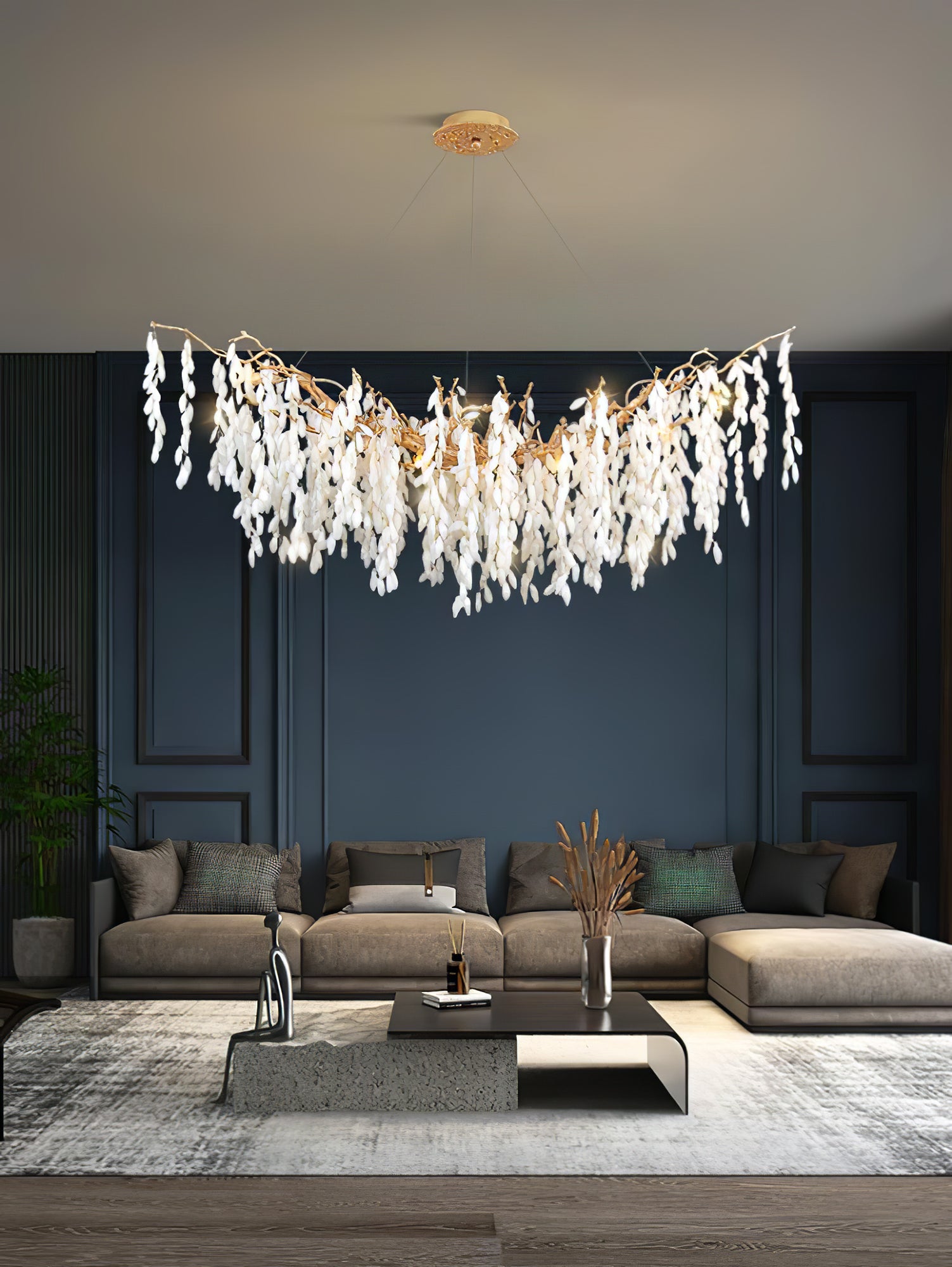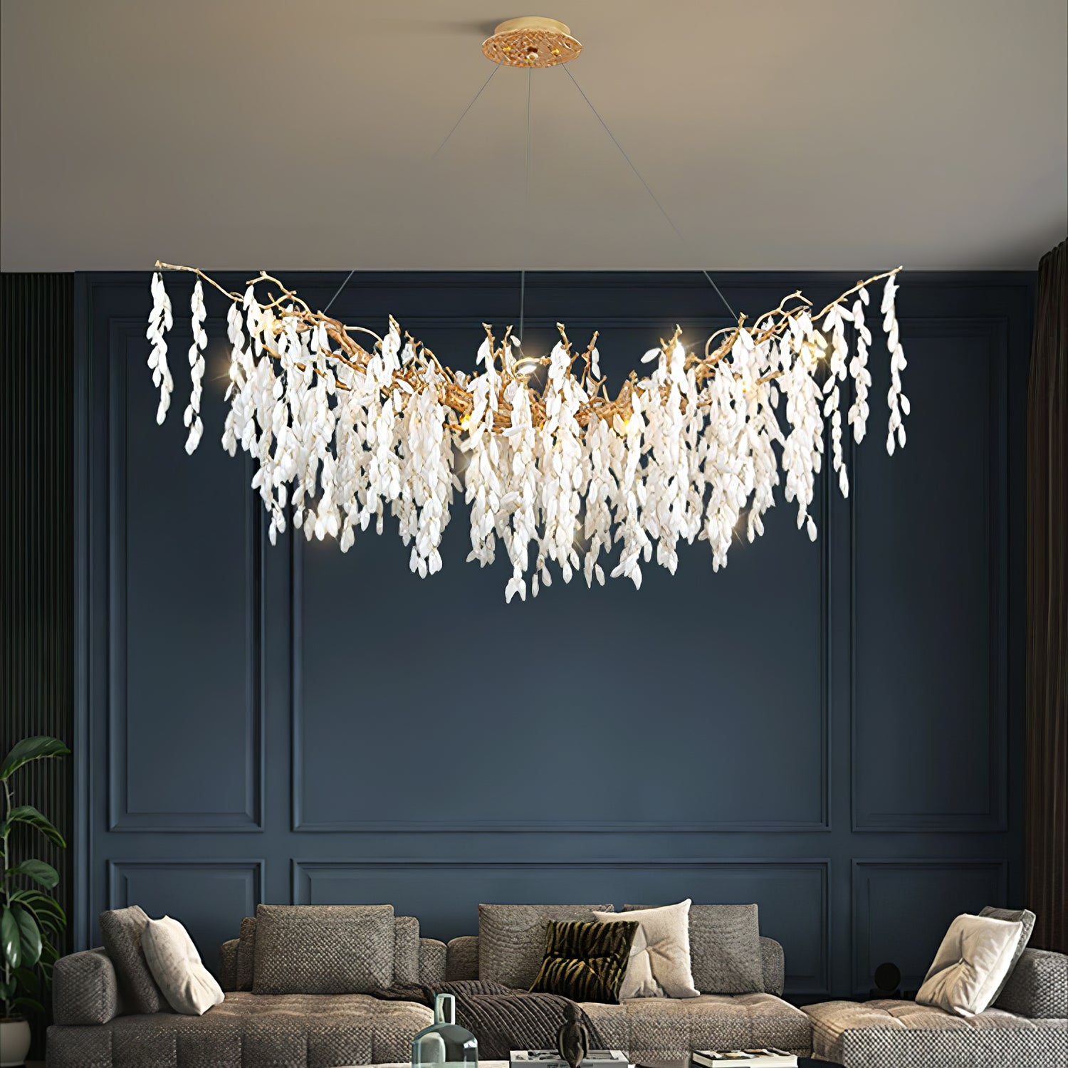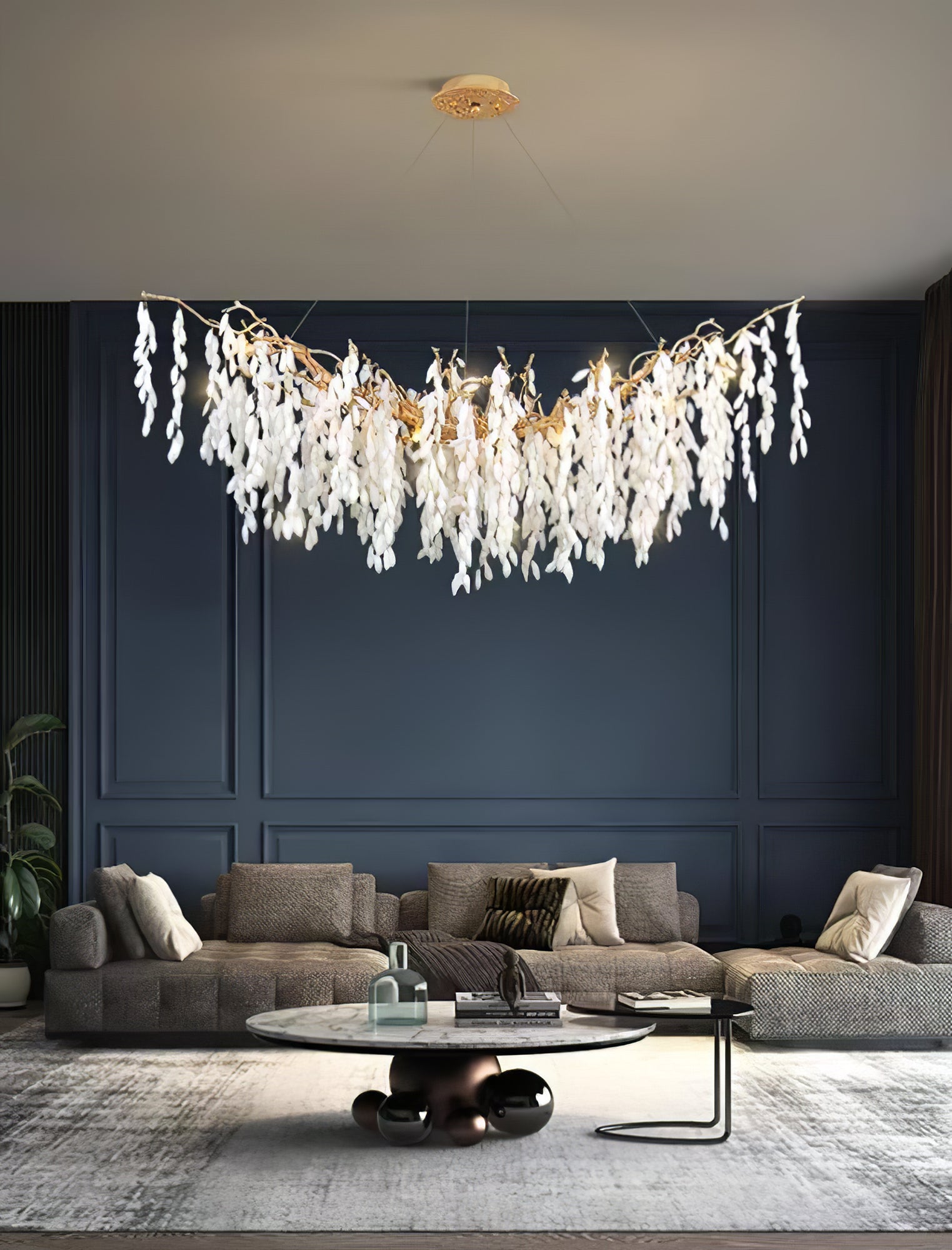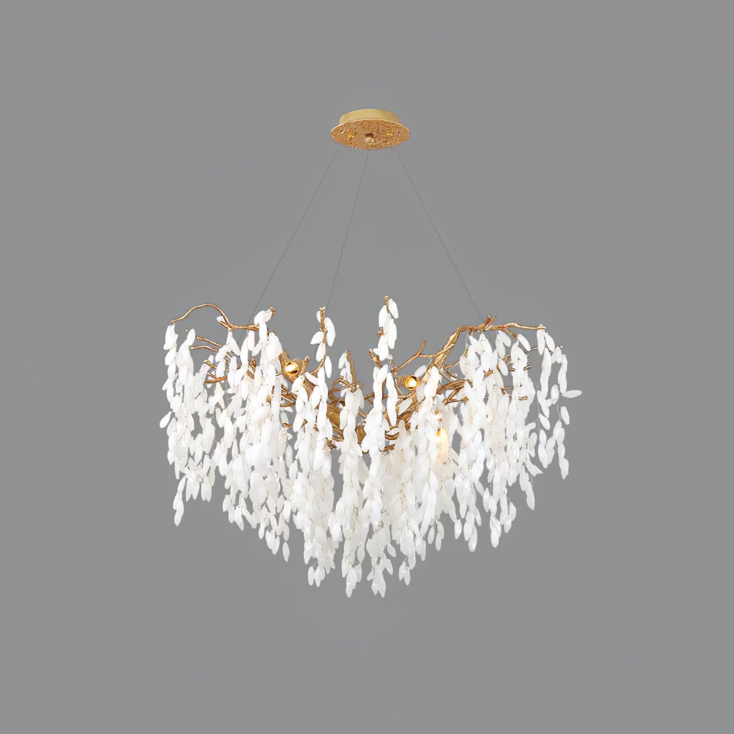 Tämä valkoinen Jade Branch -messinkikruunu on hienosti muotoiltu kerroksista valkoista jadea ja ylellistä messinkiä. Sen oksat muistuttavat pehmeästi putoavia lehtiä luoden kauniin ja elegantin tunnelman. Täydellinen jokaiseen moderniin kotiin.