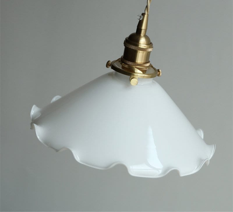 Valkoinen opaliinilasi kukkariippuva LED-valo tammipuisella lampunpidikkeellä vintage-tyyliin - Faredecor